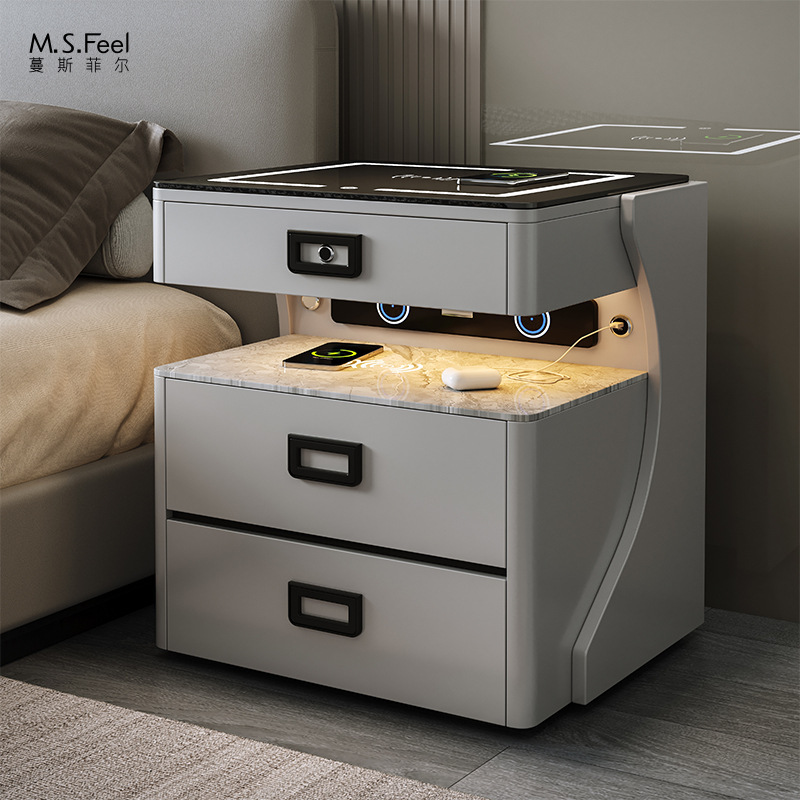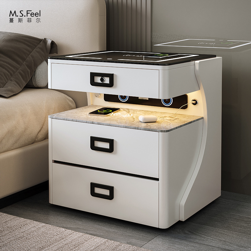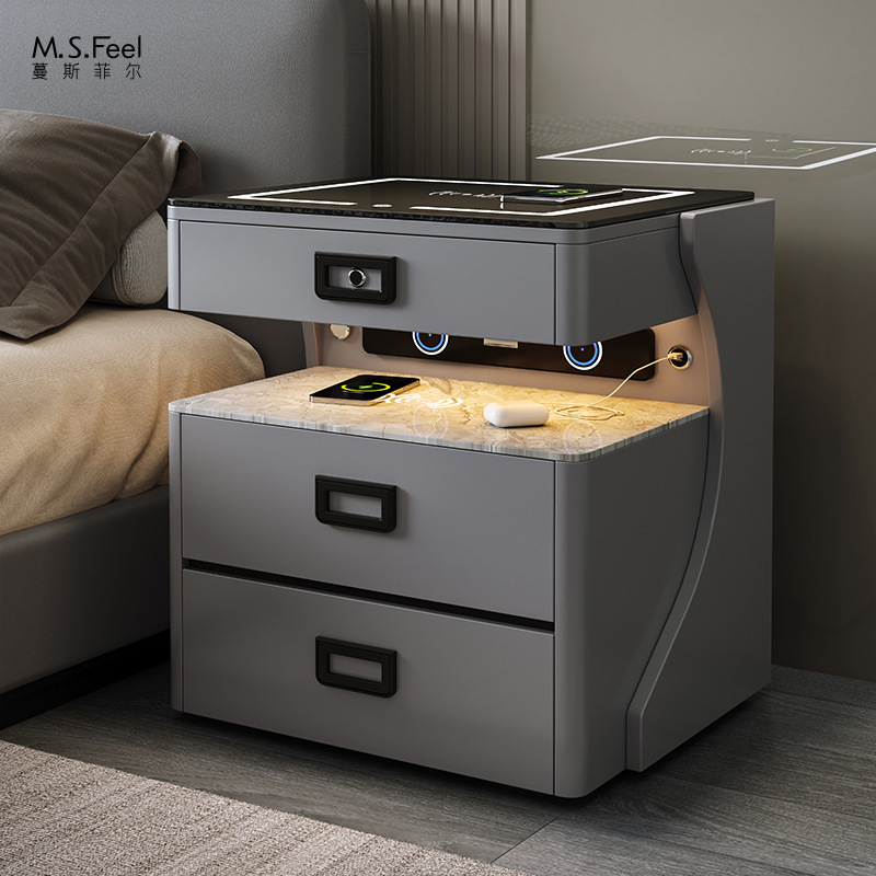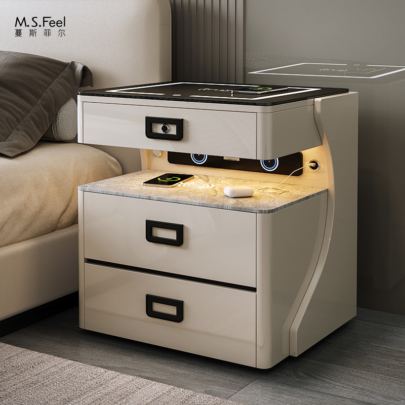 스마트 침대 옆 테이블 안전 올인원 하이 엔드 라이트 럭셔리 블루투스 2025 새로운 홈 침실 침대 옆 보관 캐비닛