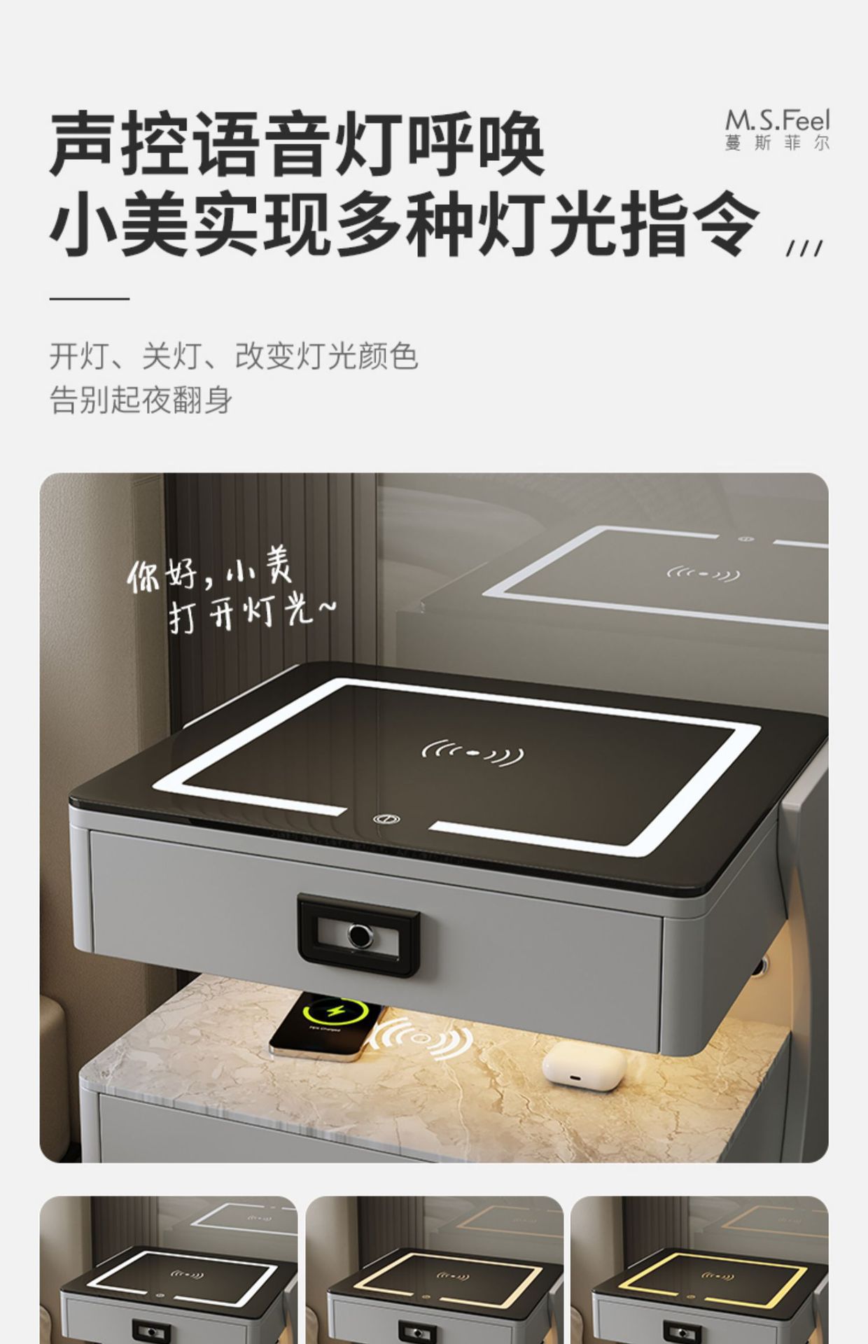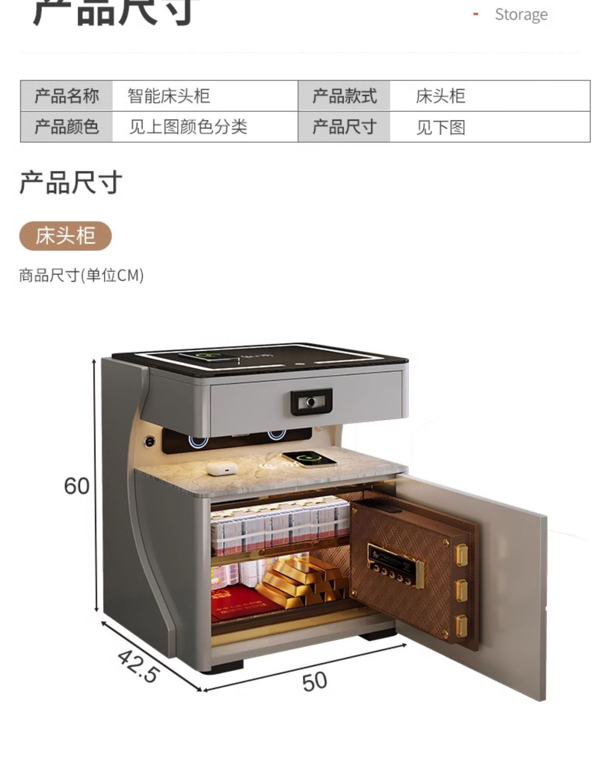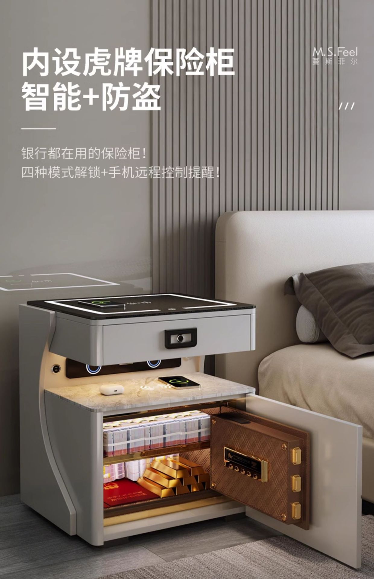 智能床头柜保险箱一体高级轻奢带蓝牙2025新款家用卧室床边收纳柜