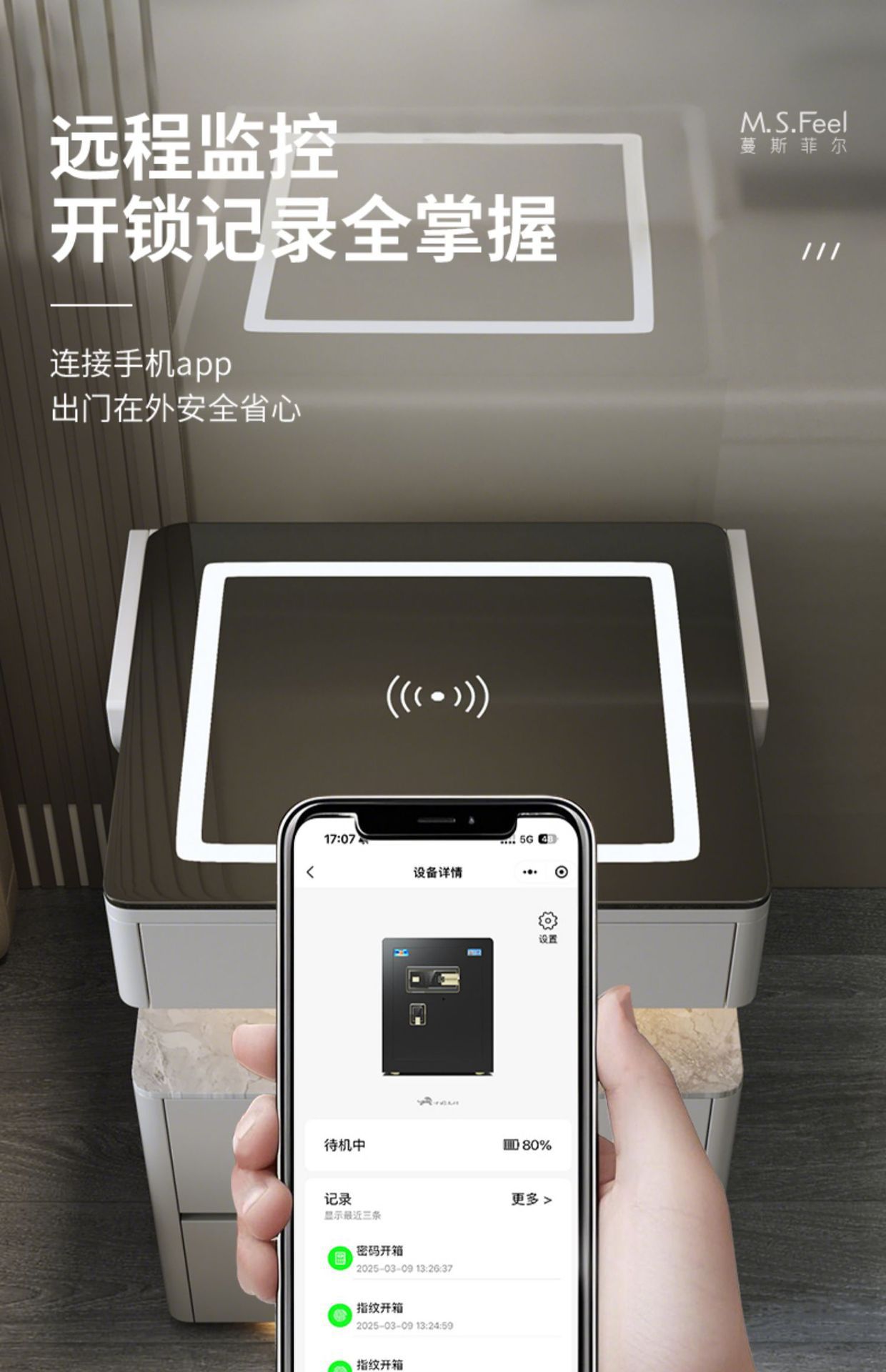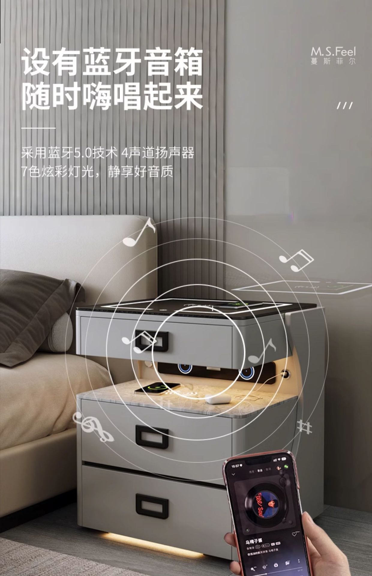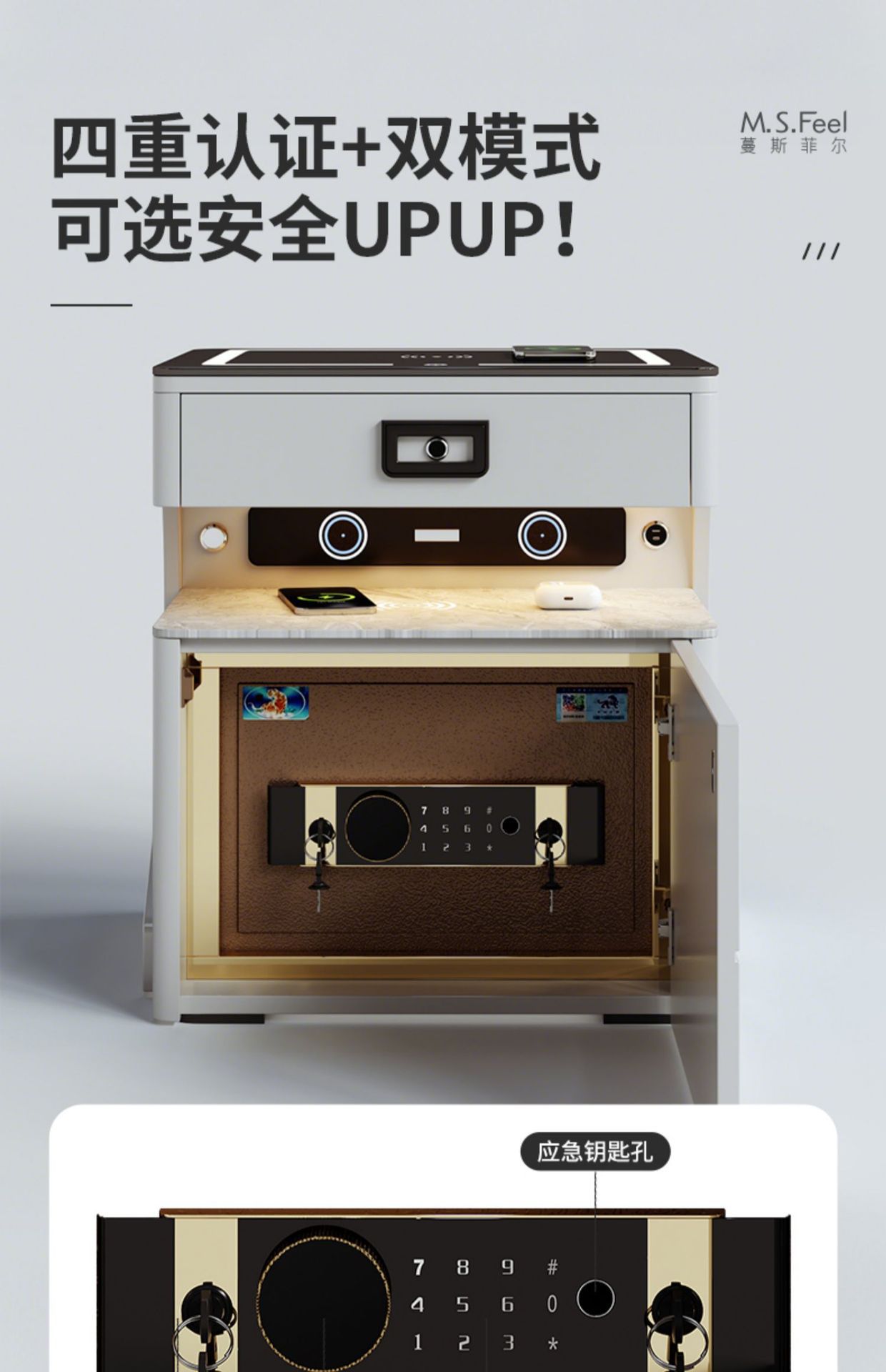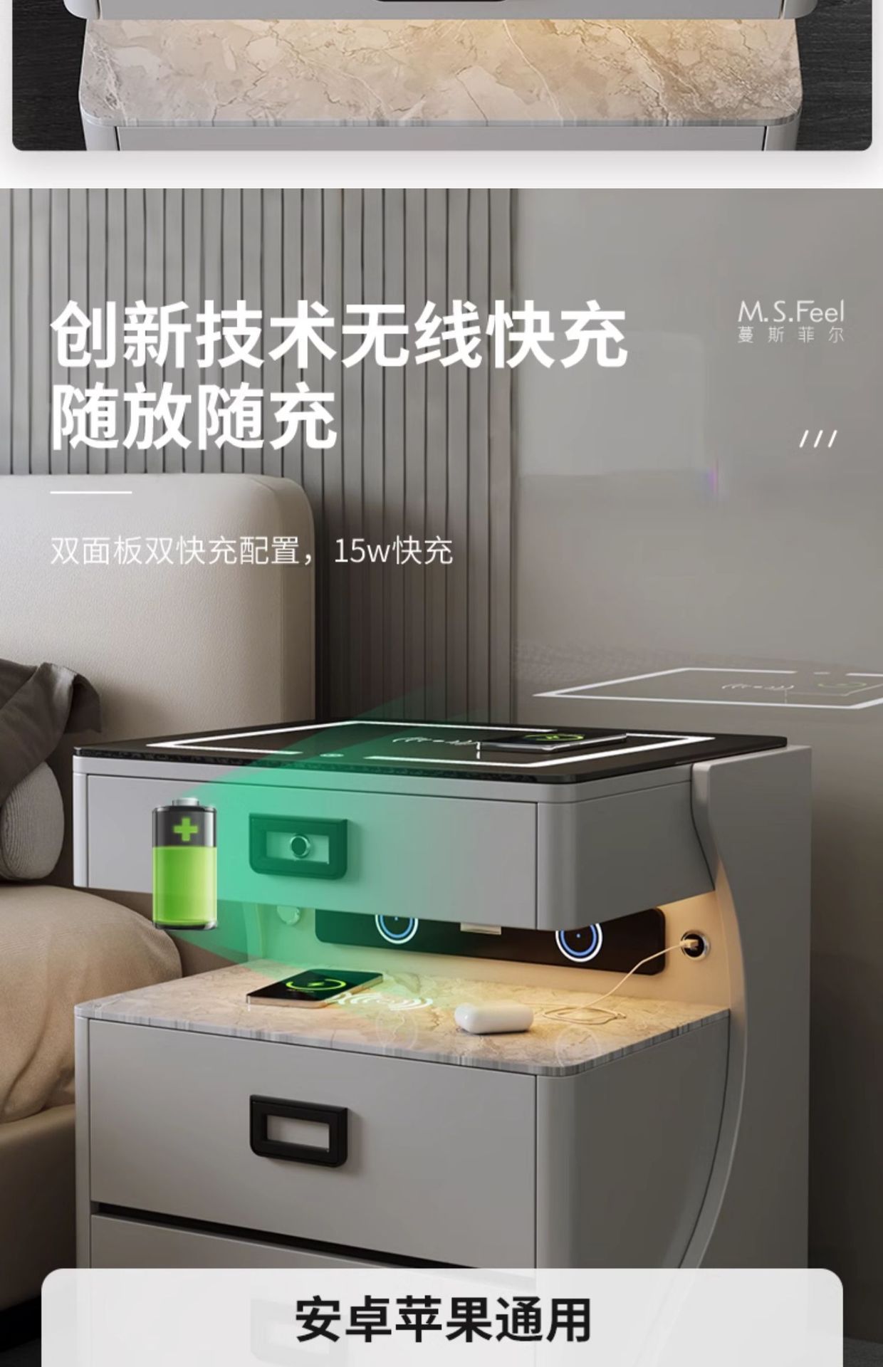 智能床头柜保险箱一体高级轻奢带蓝牙2025新款家用卧室床边收纳柜
