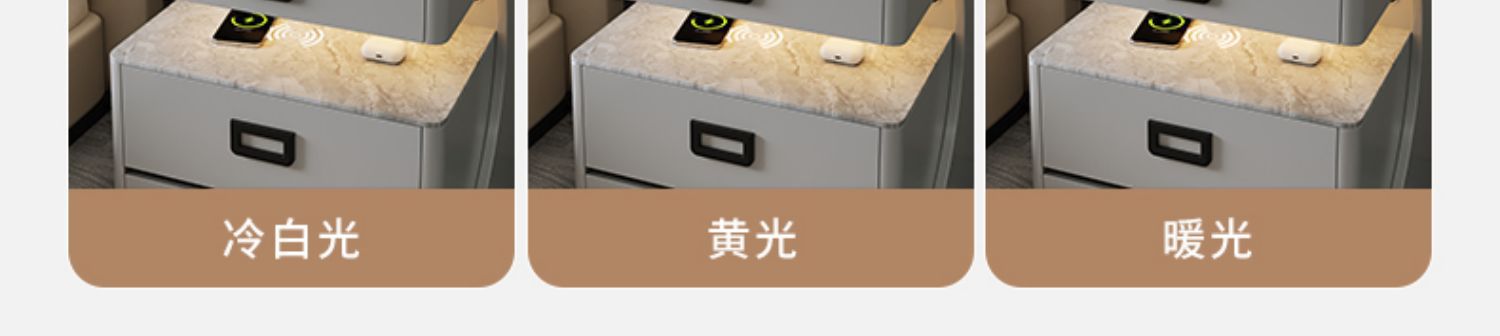 • 유백색 서랍 3개 + 터치 라이트 + 무선 충전 + USB + 바닥 센서 라이트 + 서랍 지문 잠금 장치