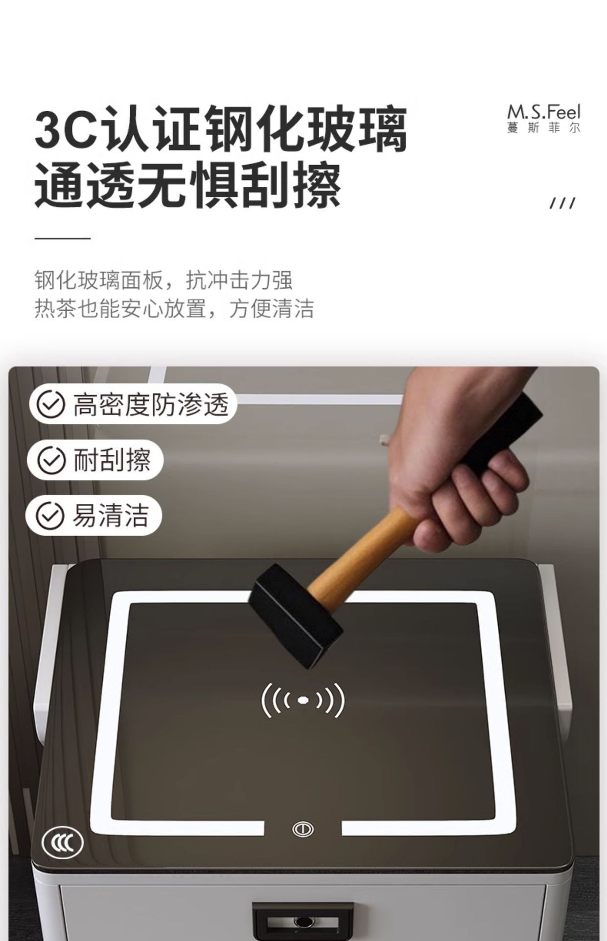 • 밀크 커피 컬러 서랍 3개 + 터치 라이트 + 무선 충전 + USB + 바닥 센서 라이트 + 서랍 지문 잠금 장치