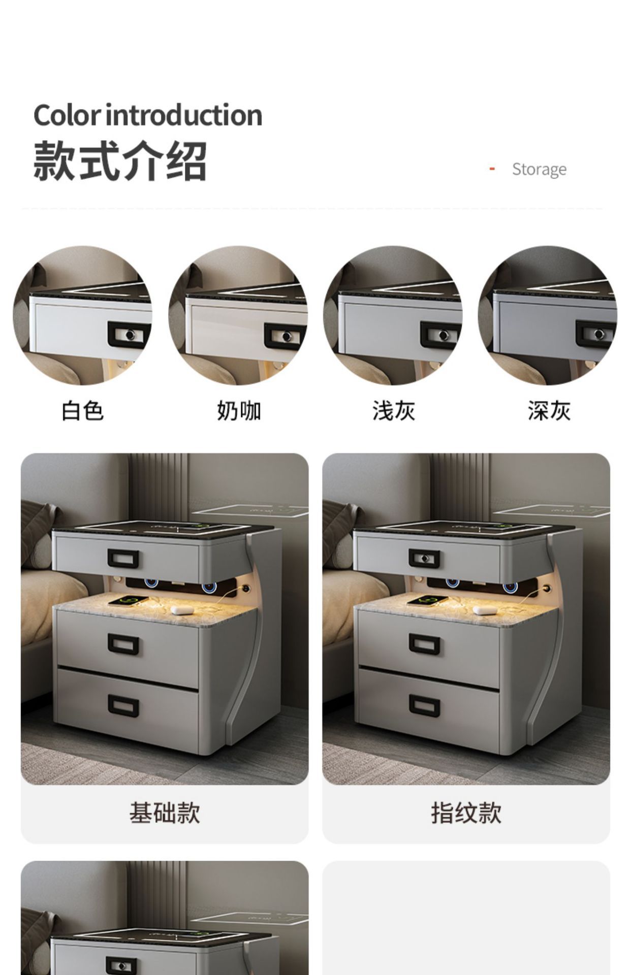 • 라이트 그레이 서랍 3개 + 터치 라이트 + 무선 충전 + USB + 바닥 센서 라이트 + 서랍 지문 잠금 장치