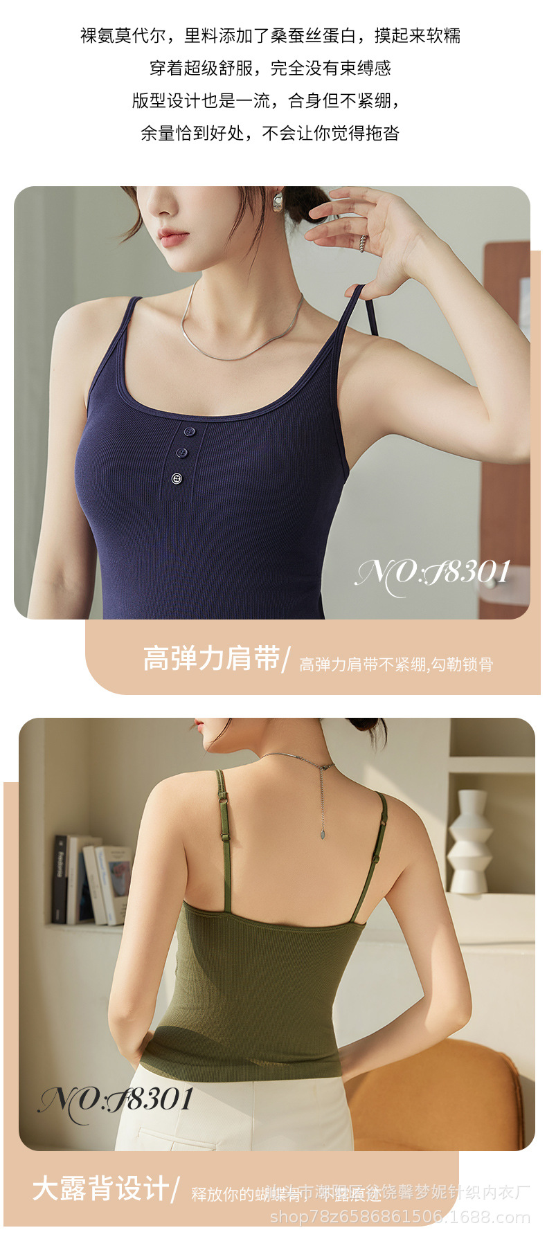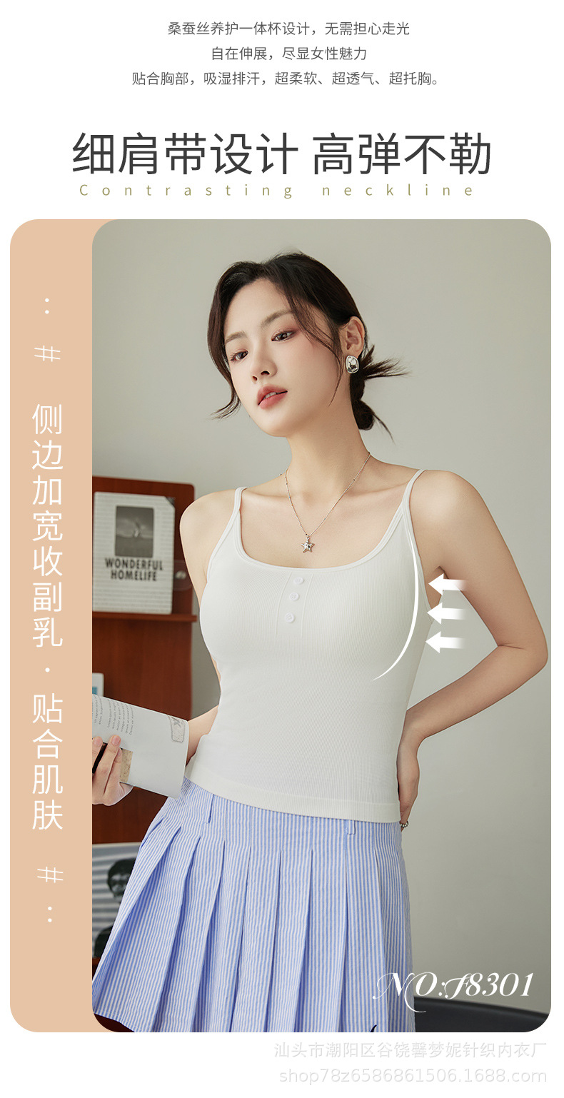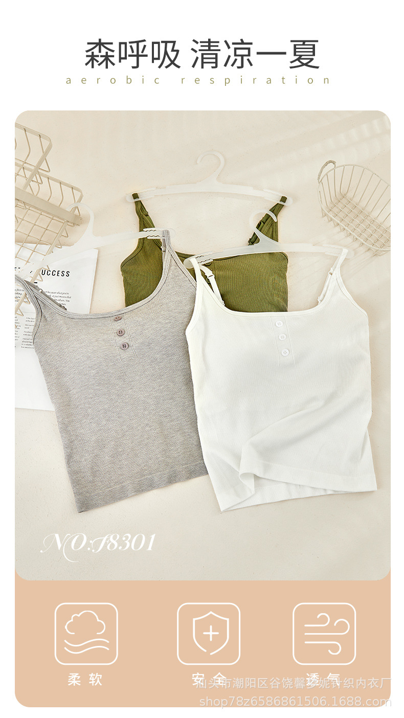 섹시한 스퀘어 넥 스파게티 스트랩 캐미솔, 가슴 패드 포함, 여성용 아우터웨어, 아름다운 등, 다용도 슬리밍 탑, 가짜 버튼스토어 가기