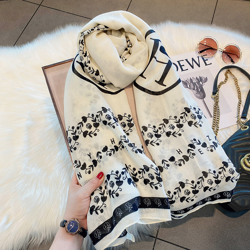 여성을위한 복고풍 간단한 편지 봄, 가을 목도리 2022 새로운 이중 목적 겨울 따뜻한 스카프 외부 면화 및 린넨 실크 스카프 얇은