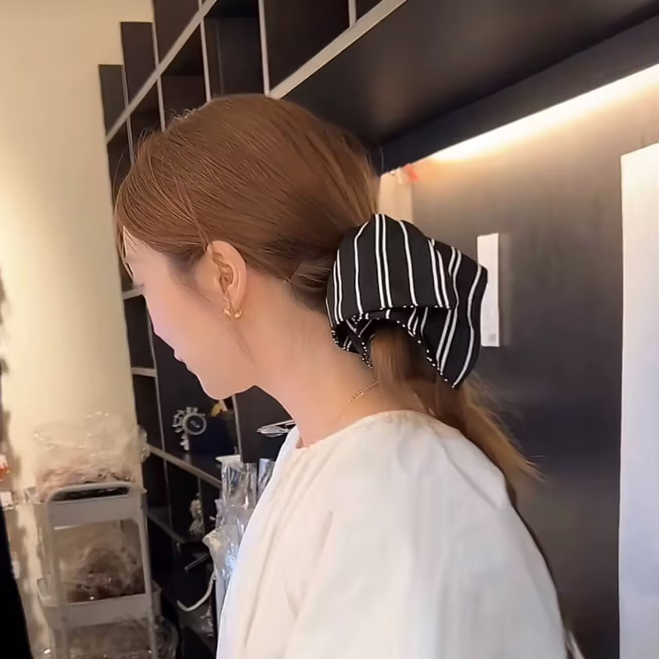 • 베이지색 도트무늬 머리끈