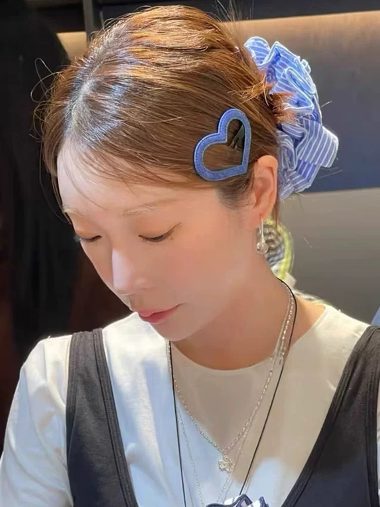 한국 어니 홈 액세서리 같은 스타일 부드러운 심플 스트라이프 대형 경사 인텐신 헤어 링 사이드 뱅 헤어핀 올 매치 마루 베니 헤드
