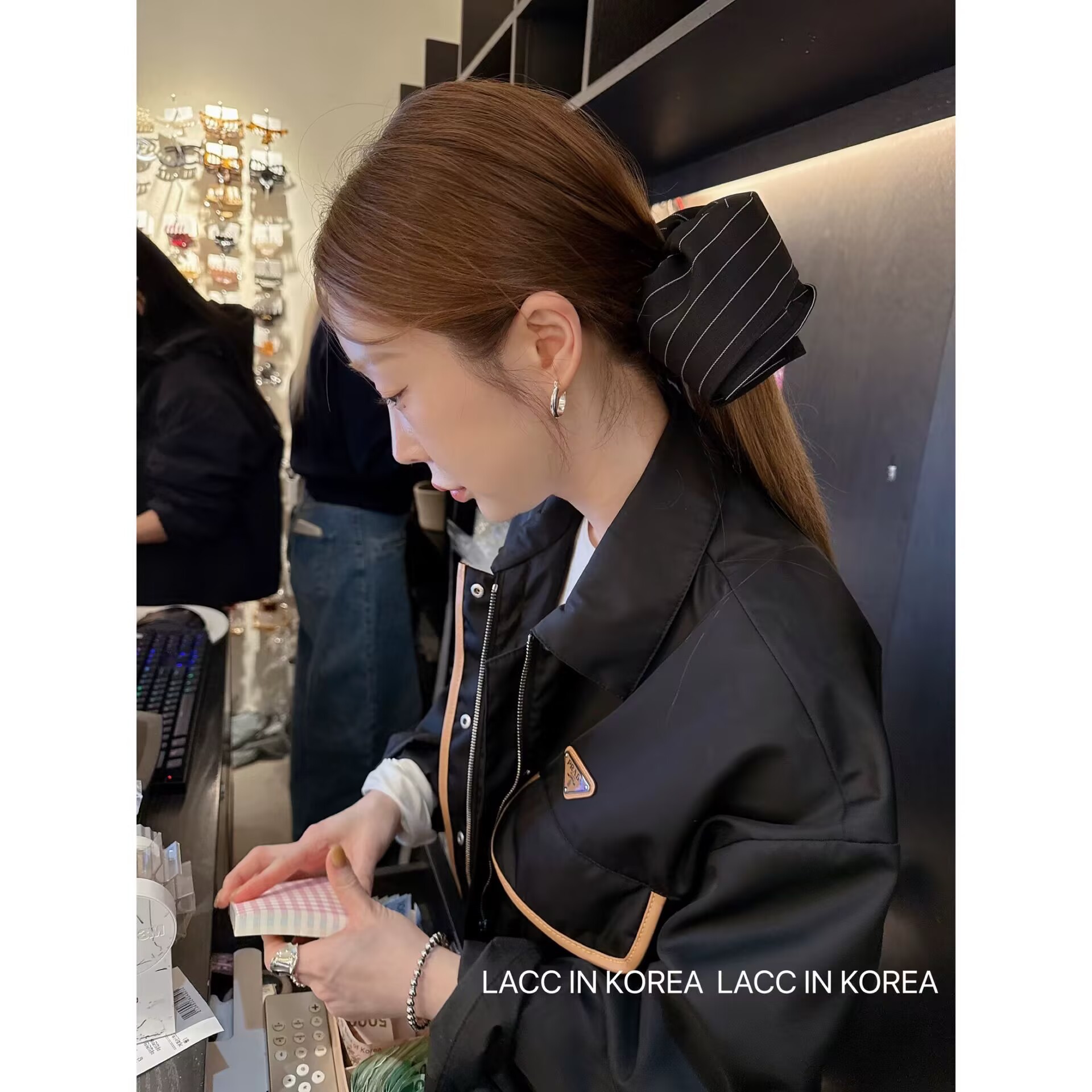• 검은색 자수 머리끈