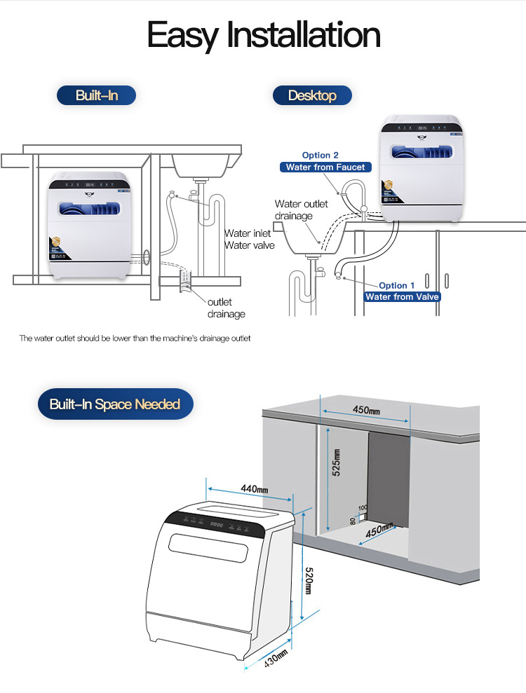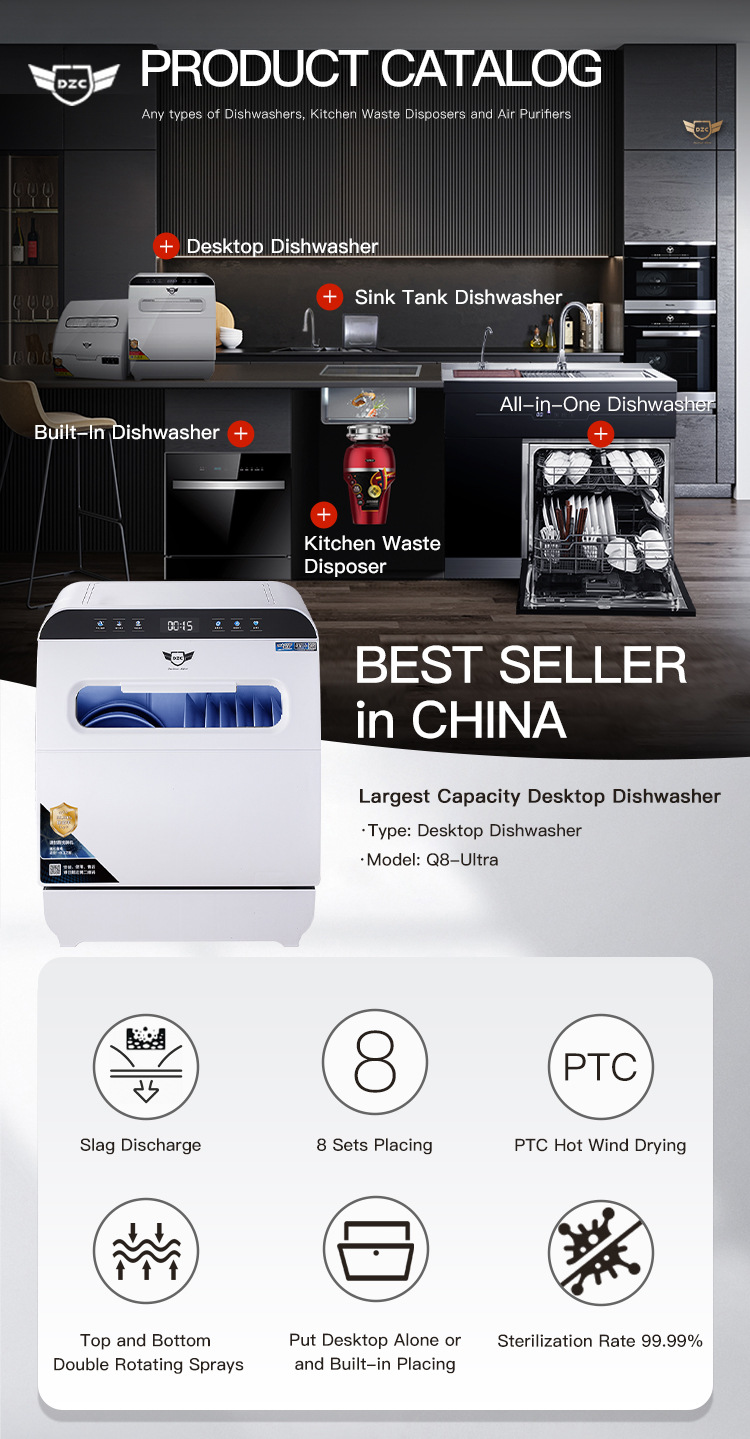 신제품 Deshi 주방 식기 세척기 8인용 대용량 상하 이중 스프레이 자동 건조 및 소독 Q8-Ultra