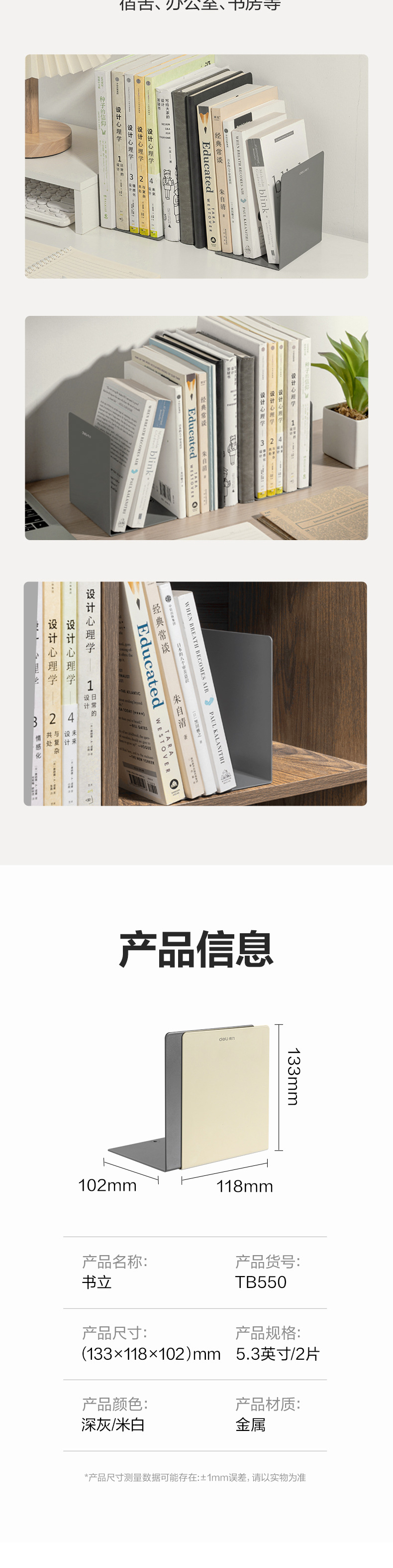 델리 TB550 메탈 북 스탠드 독서 스탠드 북 클립 도서 보관 학생 베젤 스탠드 간단한 L자형 두꺼운스토어 가기