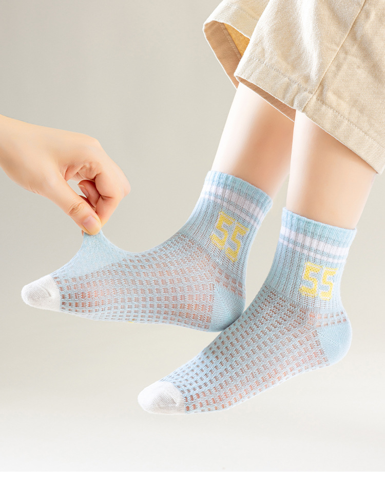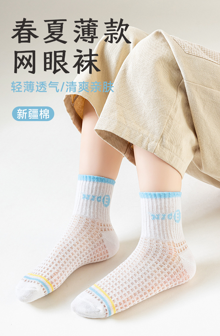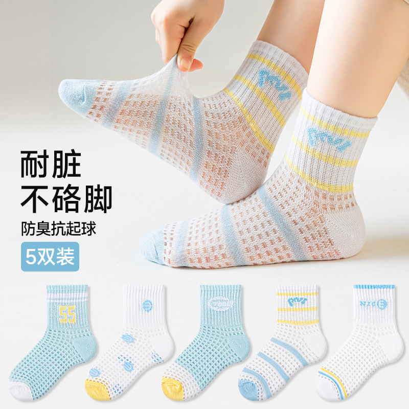 어린이 양말 소년 여름 얇은 면 양말 통기성 스포츠 냄새 방지 메쉬 미드 튜브 양말 큰 어린이 소년 봄과 여름