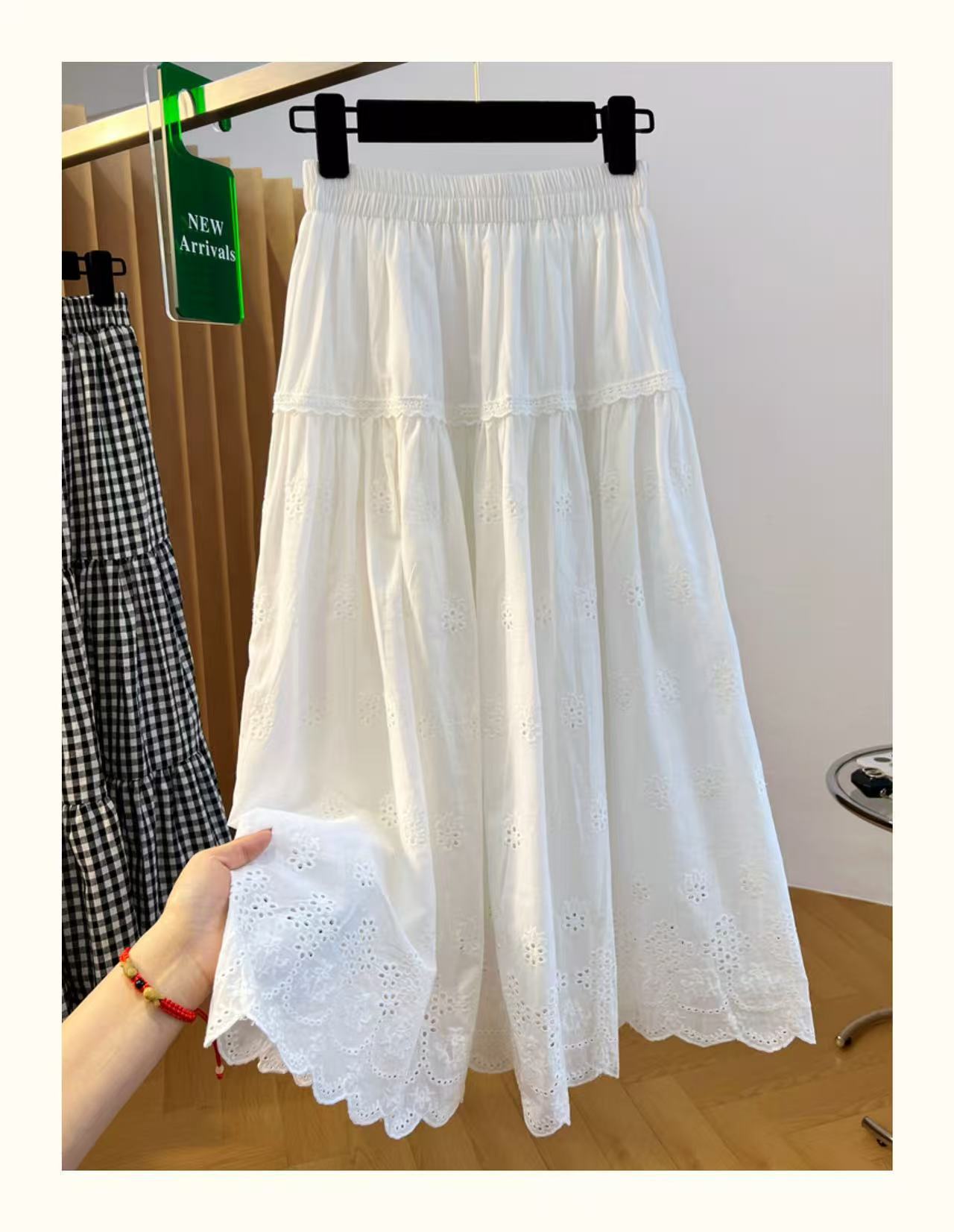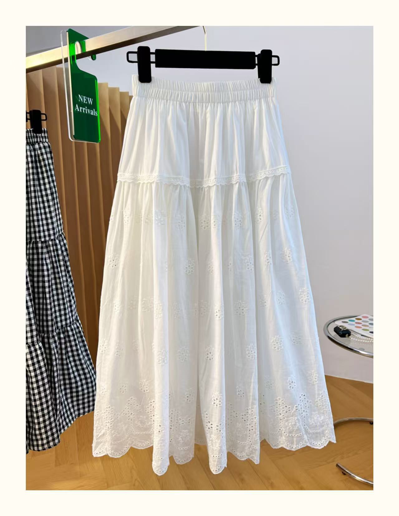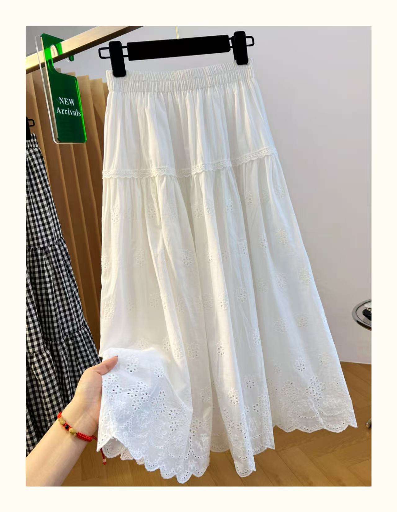 白月光重工半裙闭眼入温柔风重工镂空刺绣a字版超百搭半身裙
