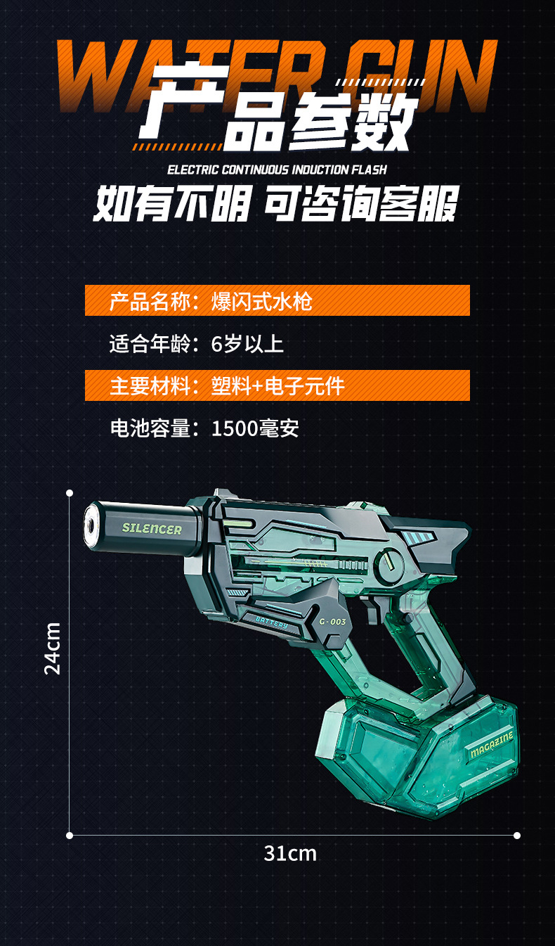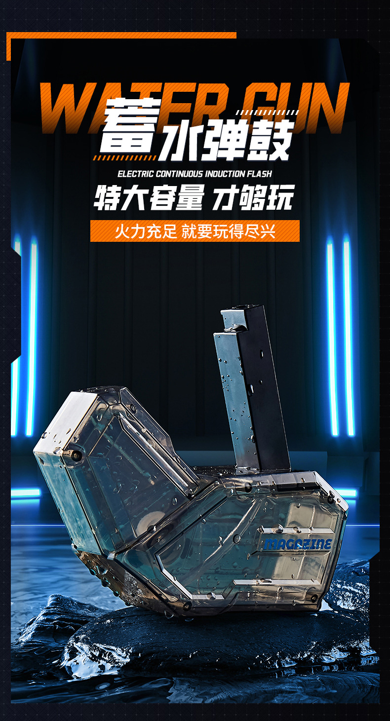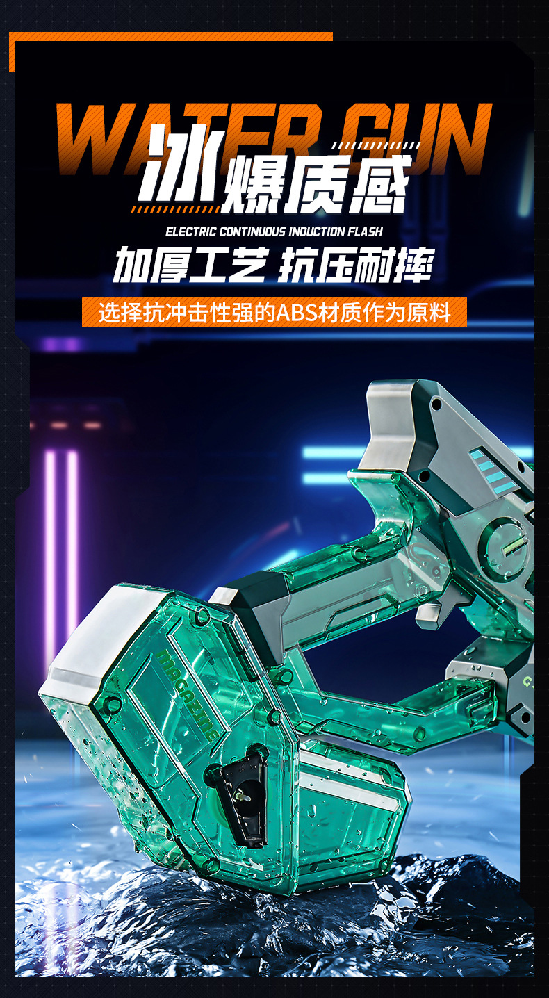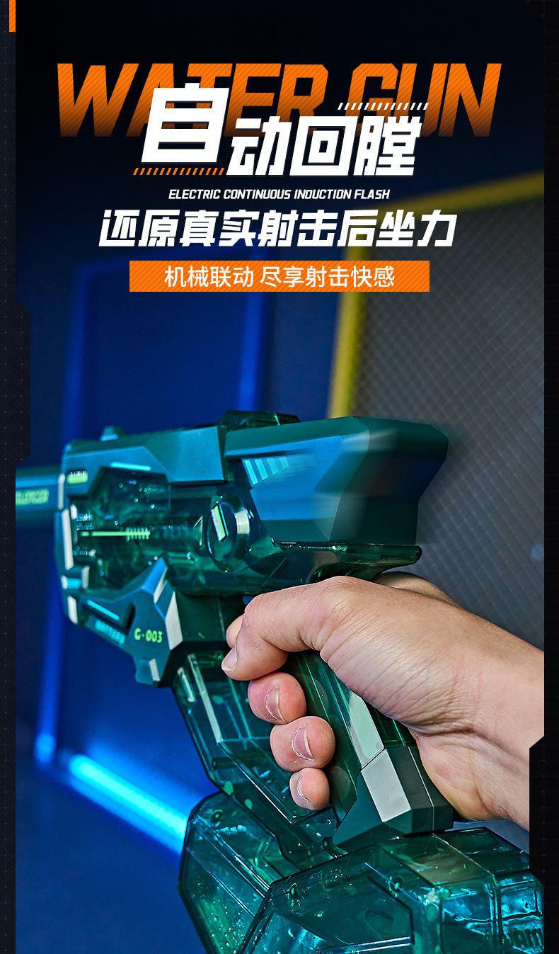 새로운 전기 버스트 물 총 백 챔버 대용량 고압 화재 조명 어린이 물 트렌드 장난감 도매