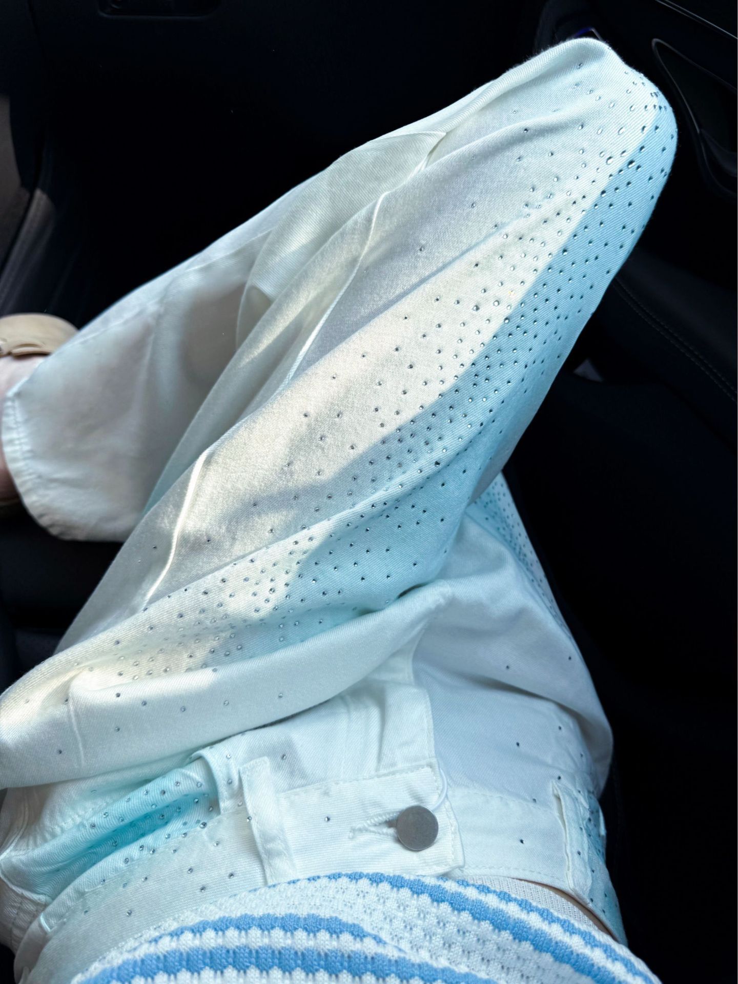 화이트 팬츠 여성의 2025 새로운 폭발성 패션 조커 중공업 뜨거운 드릴링 높은 허리 슬리밍 스트레이트 청바지 여성