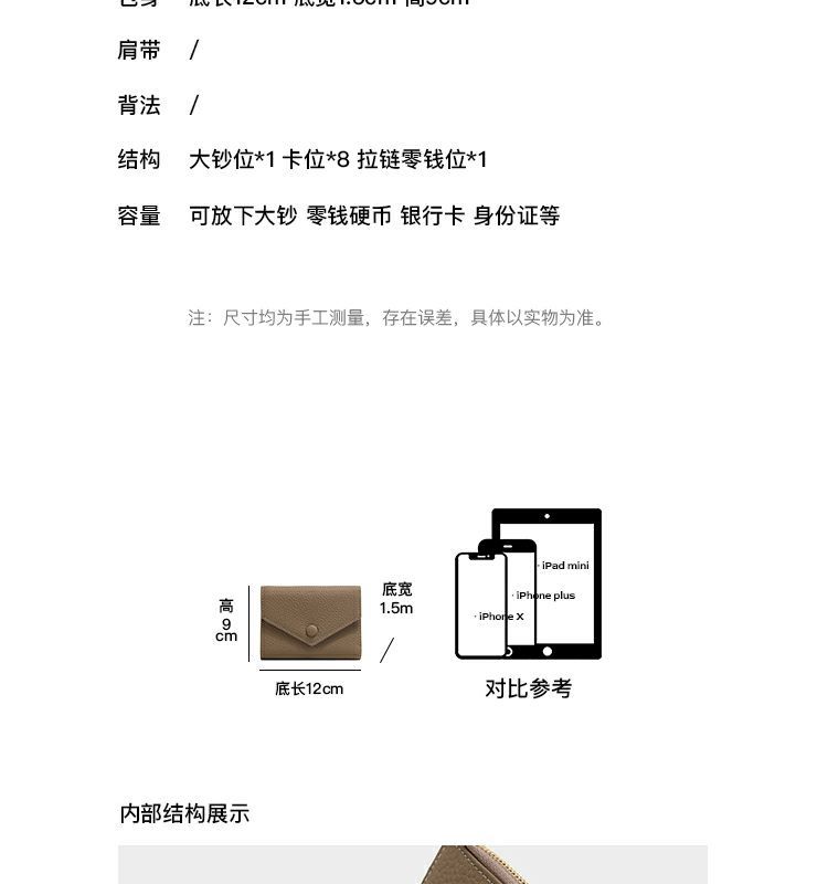 천연 가죽 질감 지갑 여성용 2024 신상 동전 지갑 소형 지갑 여성 카드 지갑 3-in-1 여성용 인기 상품스토어 가기