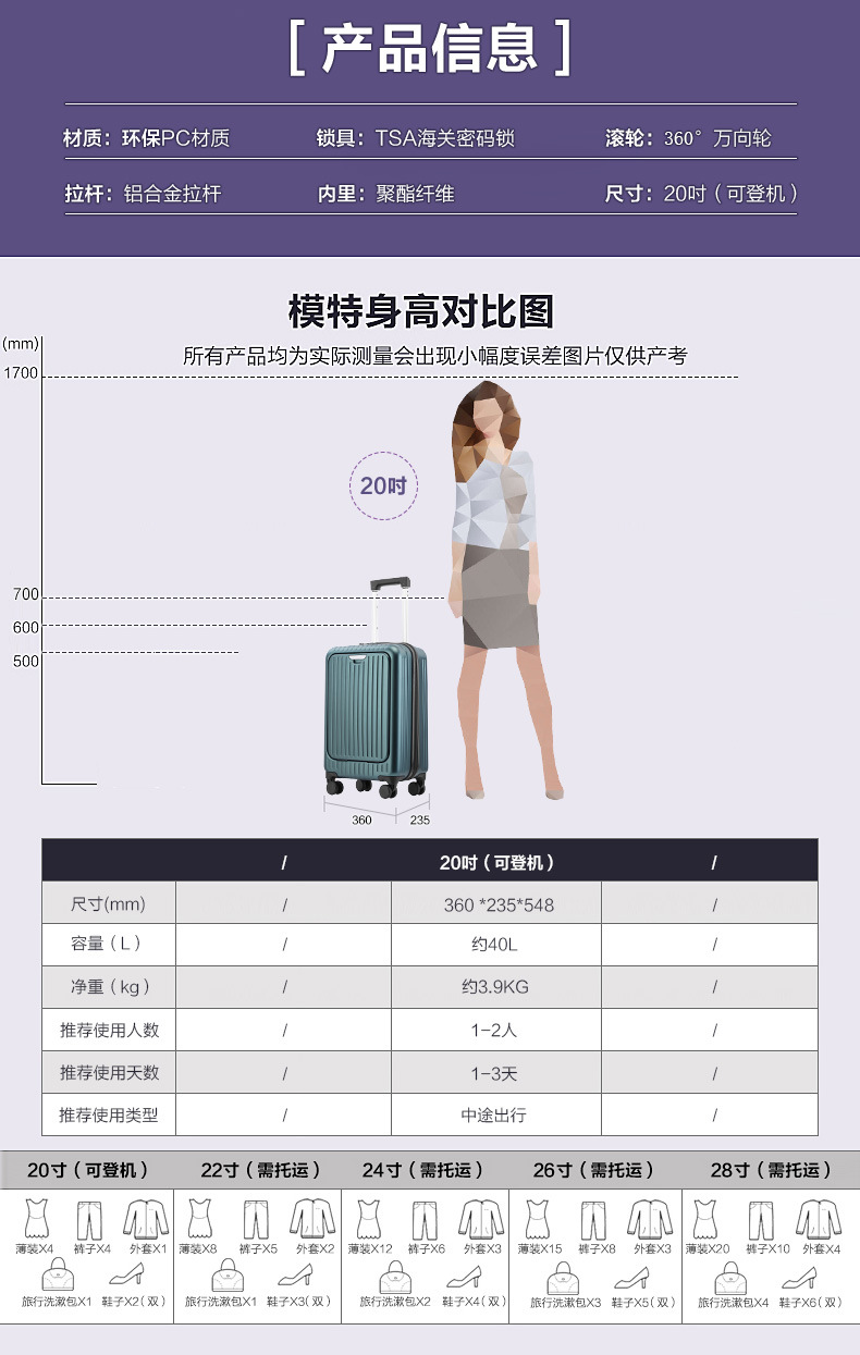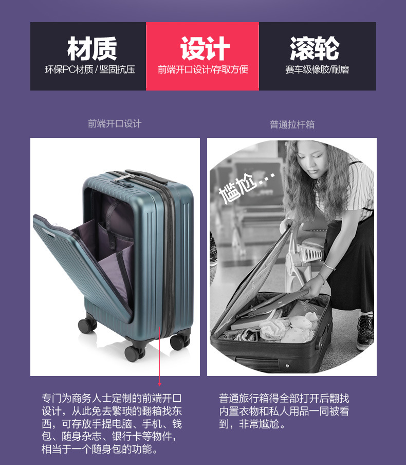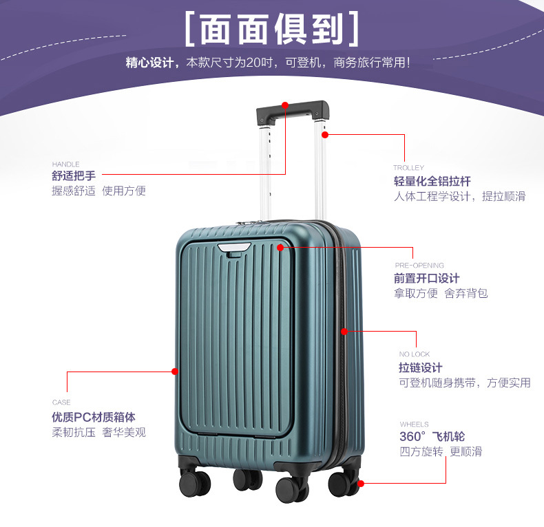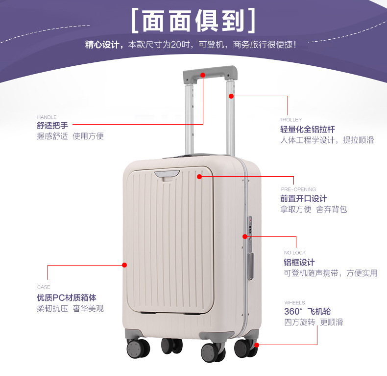 전면 개방형 비즈니스 여행가방, 다기능 트롤리 케이스, 회전식 바퀴, 인터넷 유명 여행가방, 하드케이스, 3789 도난 방지