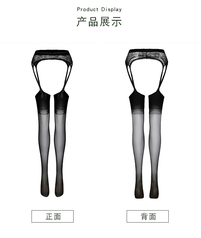 섹시한 스타킹, 여성스러운 슬링 스타킹, 올인원 흑백 실크 유혹, 침대 오픈 가랑이, 탈착 불가, 유혹적인 아름다운 다리 스타킹, 시스루스토어 가기