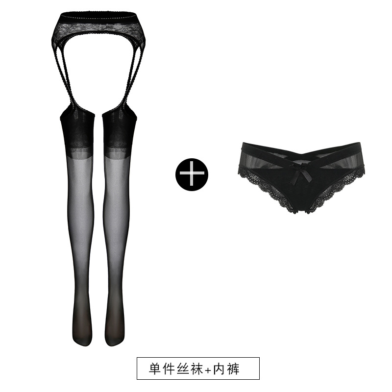 섹시한 스타킹, 여성스러운 슬링 스타킹, 올인원 흑백 실크 유혹, 침대 오픈 가랑이, 탈착 불가, 유혹적인 아름다운 다리 스타킹, 시스루