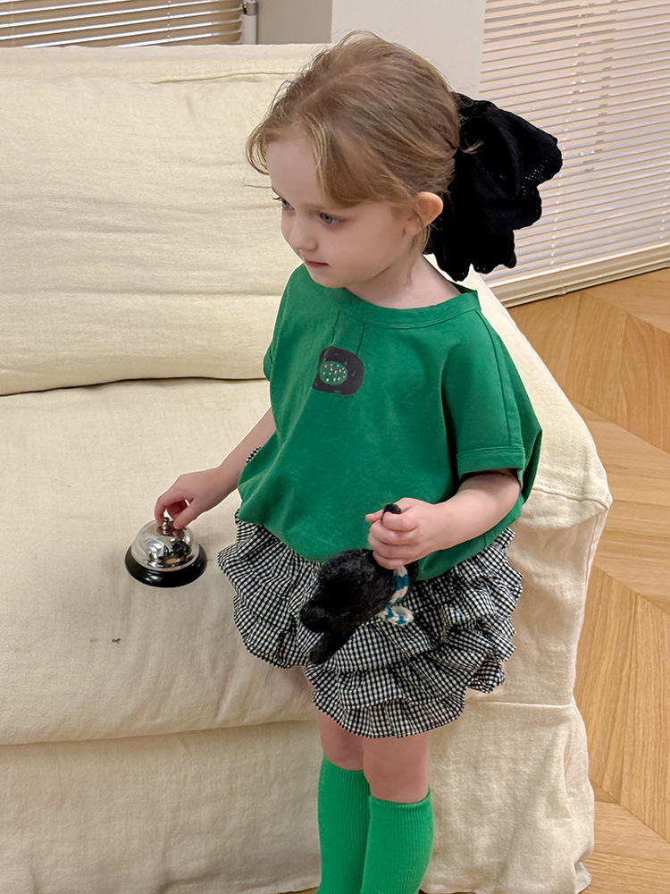 어린이 귀여운 만화 티셔츠 2025 여름 새로운 한국 스타일 소년 소녀 인쇄 패턴 짧은 소매 둥근 목 티셔츠