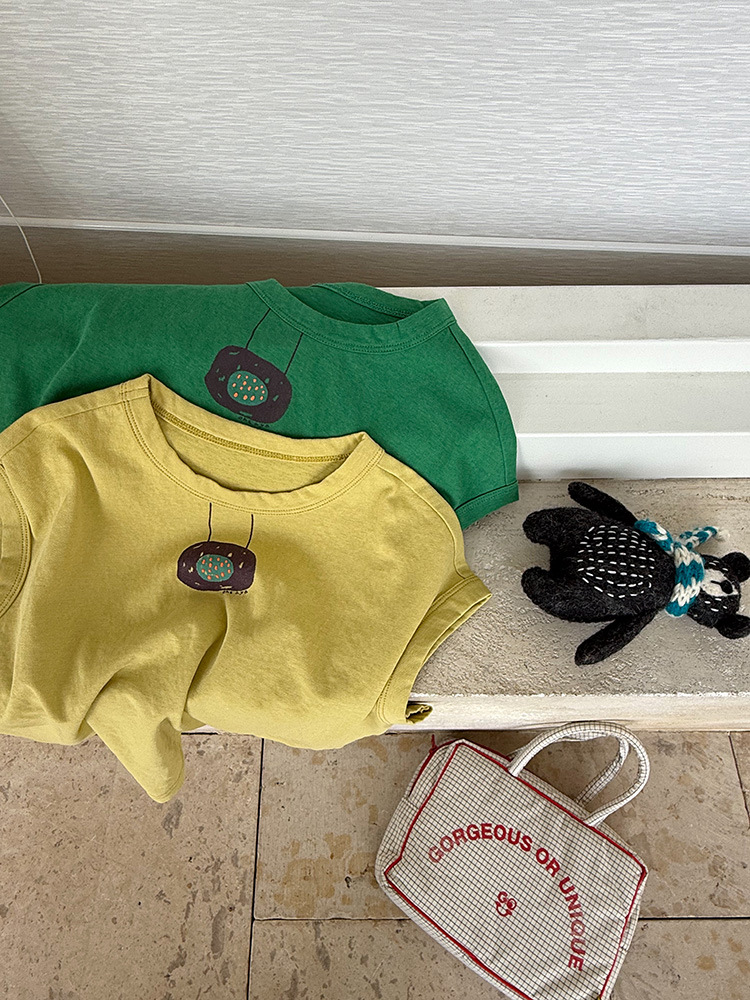 어린이 귀여운 만화 티셔츠 2025 여름 새로운 한국 스타일 소년 소녀 인쇄 패턴 짧은 소매 둥근 목 티셔츠스토어 가기