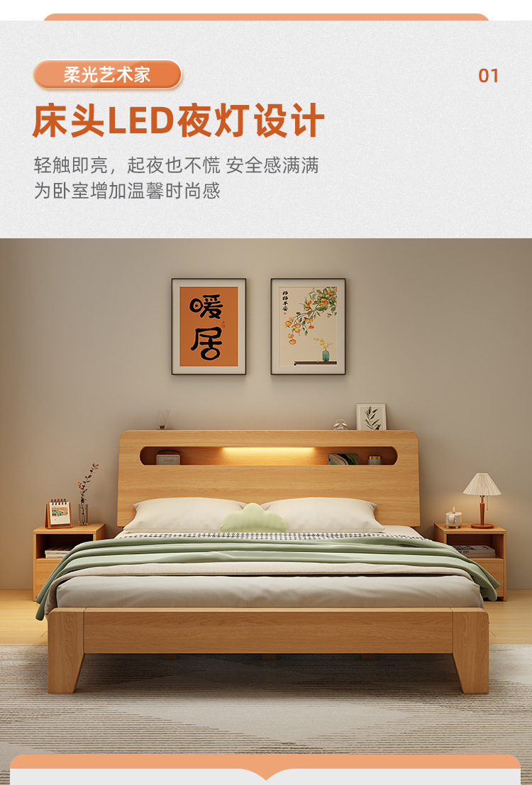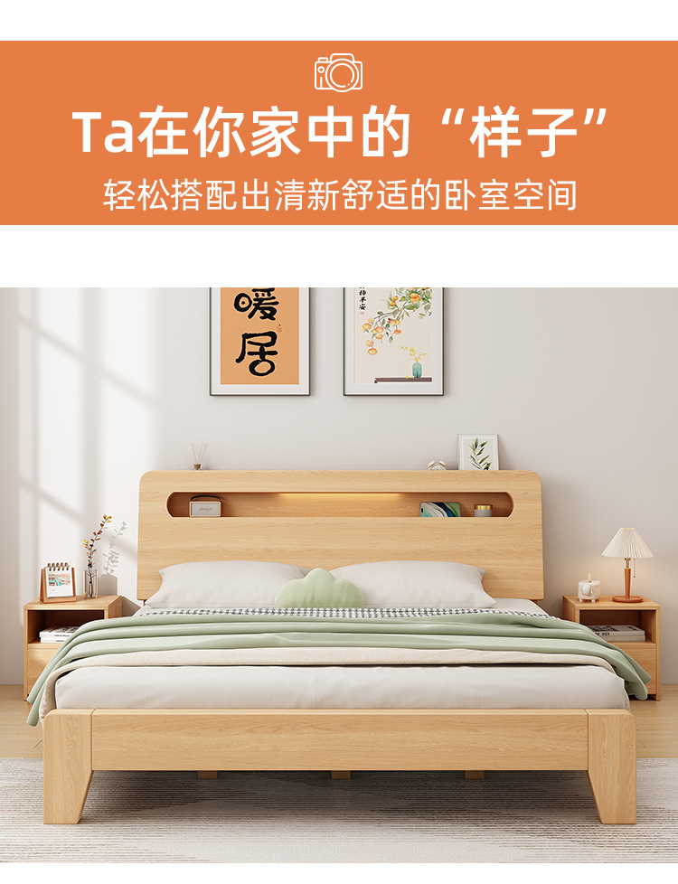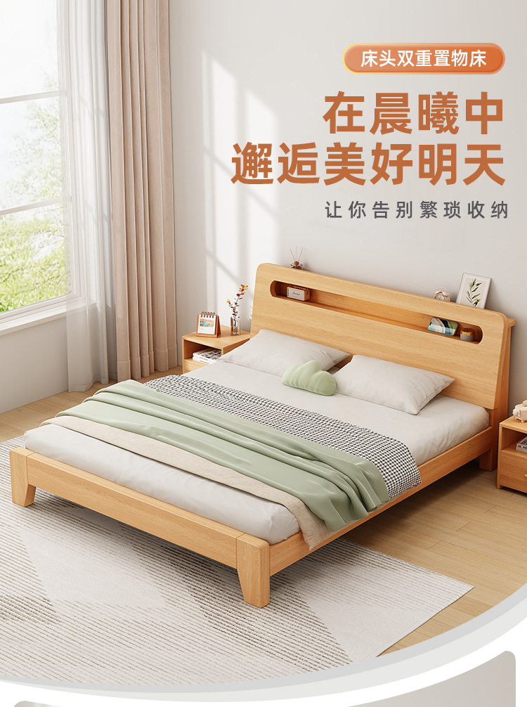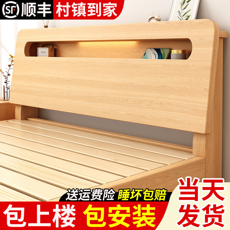 원목 침대 심플 모던 1.5m 가정용 더블 침대 경제적인 임대실 1.2m 수납 싱글 침대s^스토어 가기