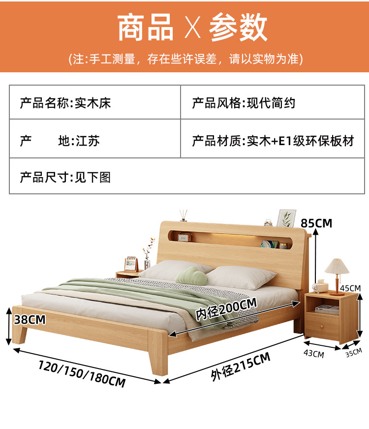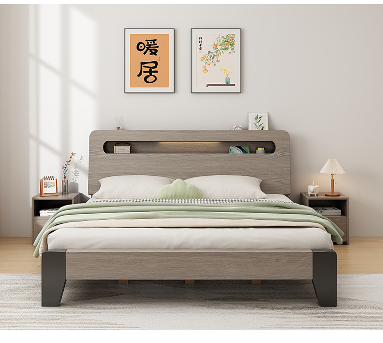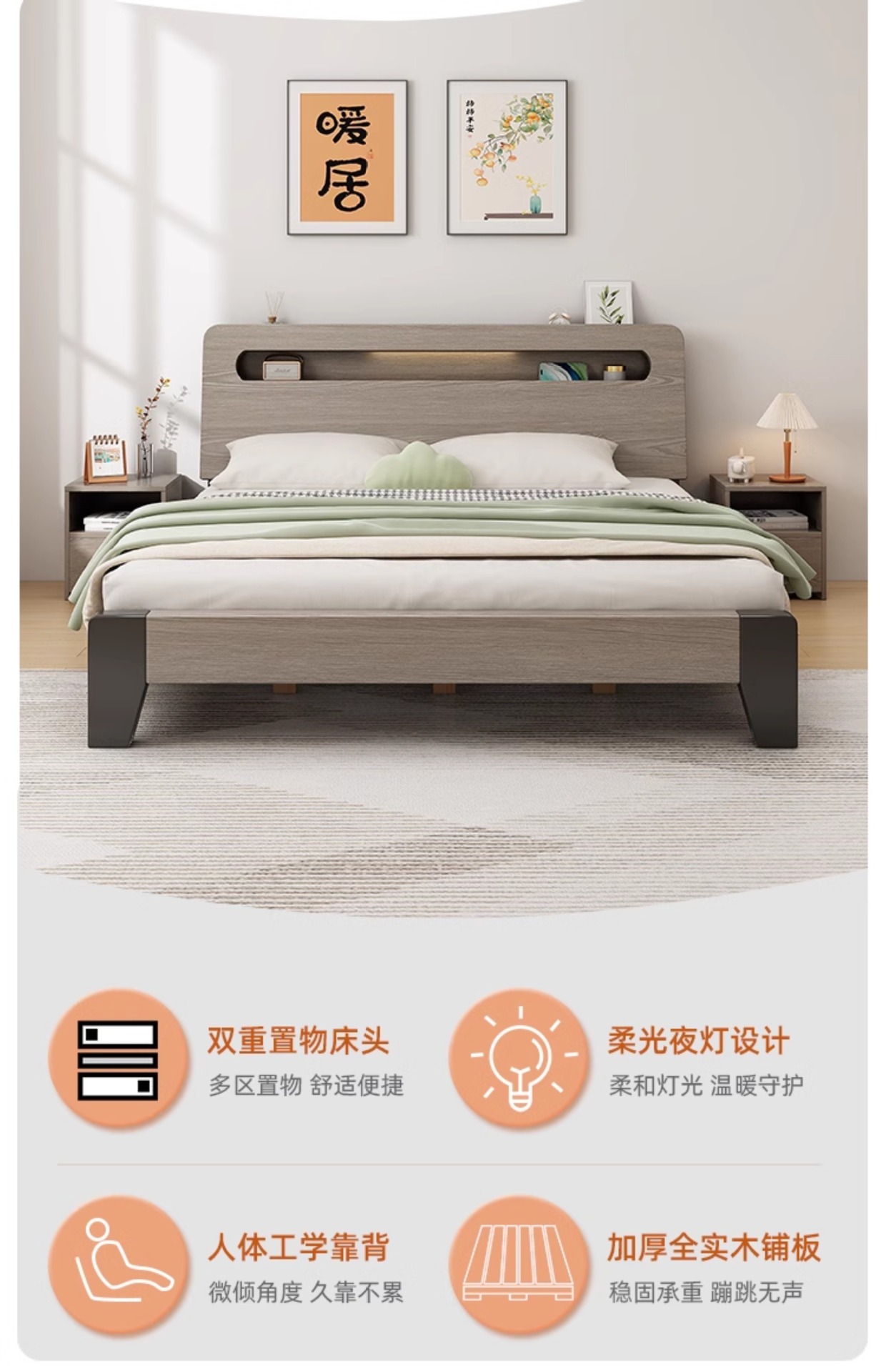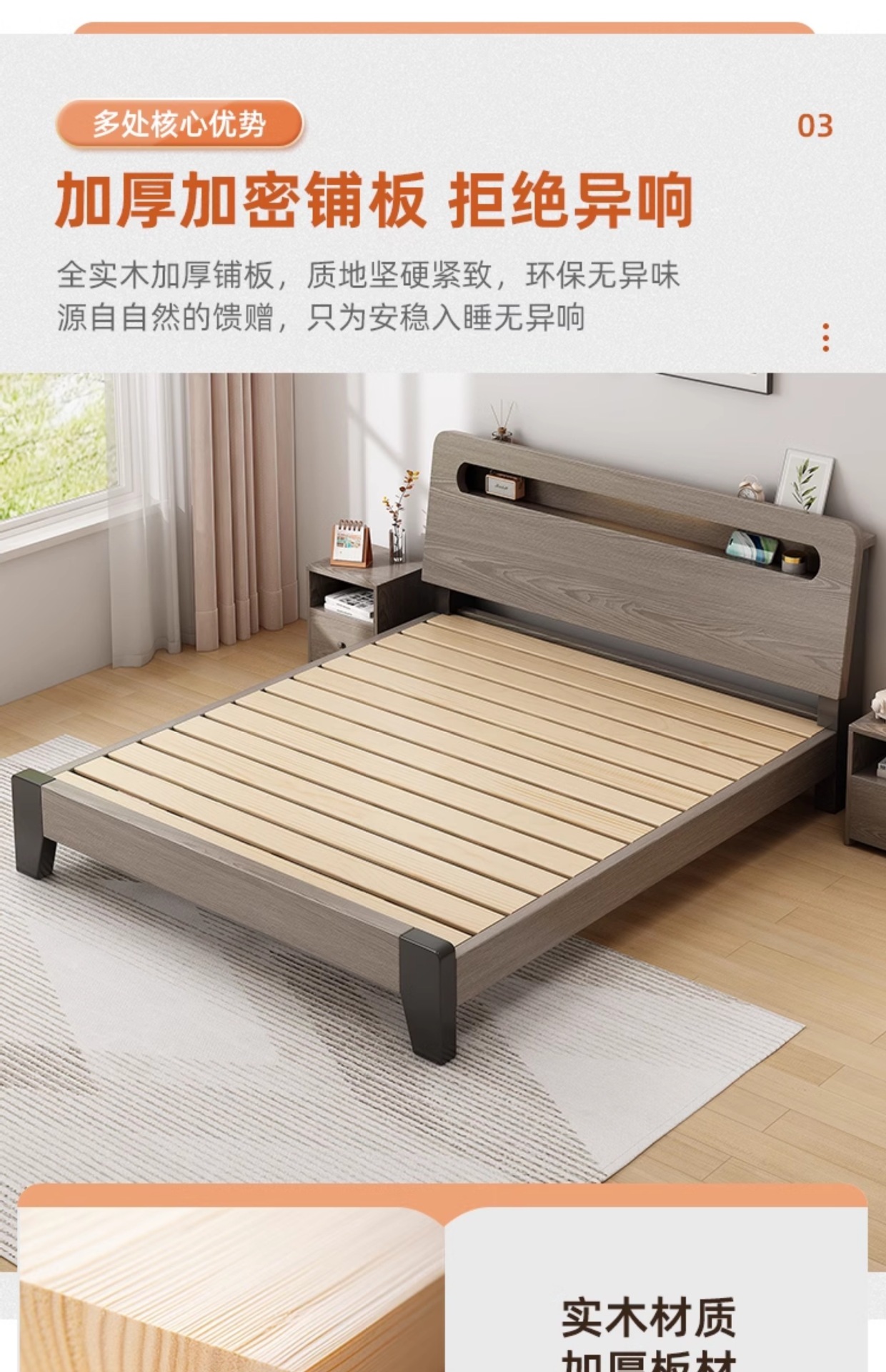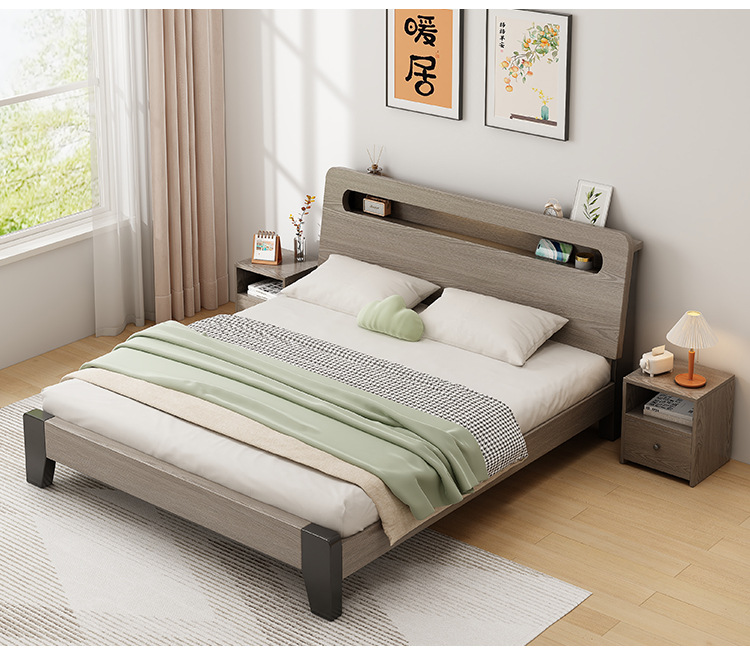 원목 침대 심플 모던 1.5m 가정용 더블 침대 경제적인 임대실 1.2m 수납 싱글 침대s^