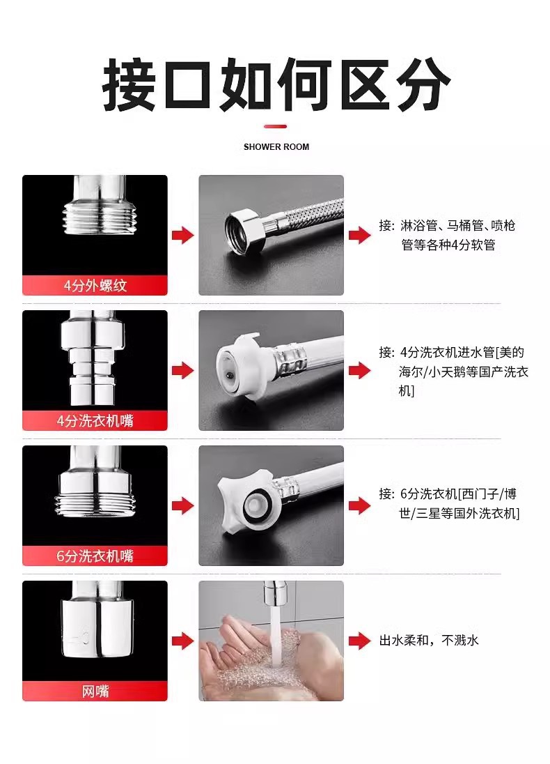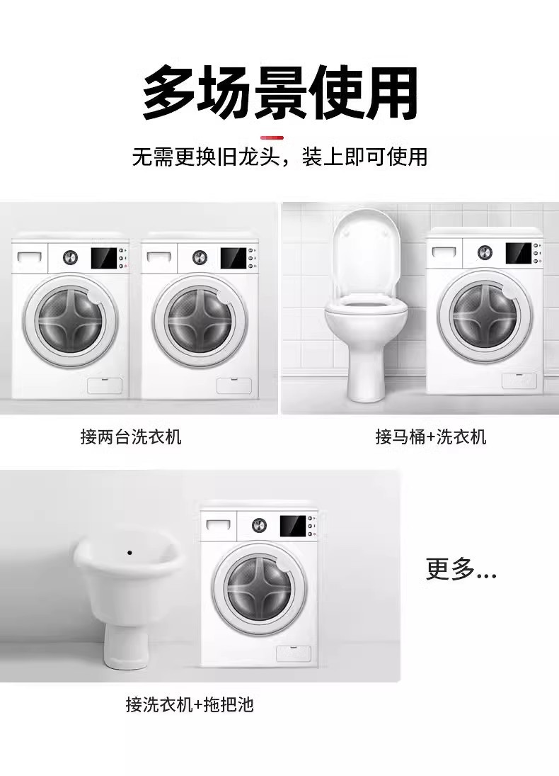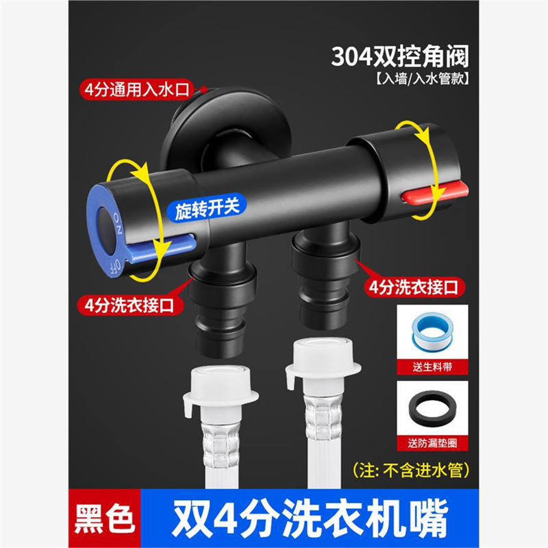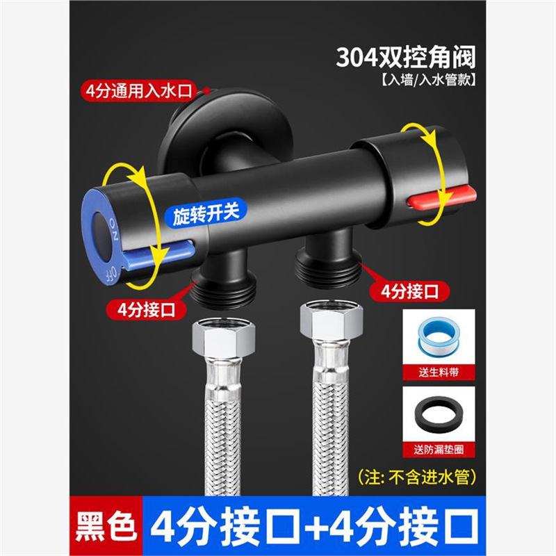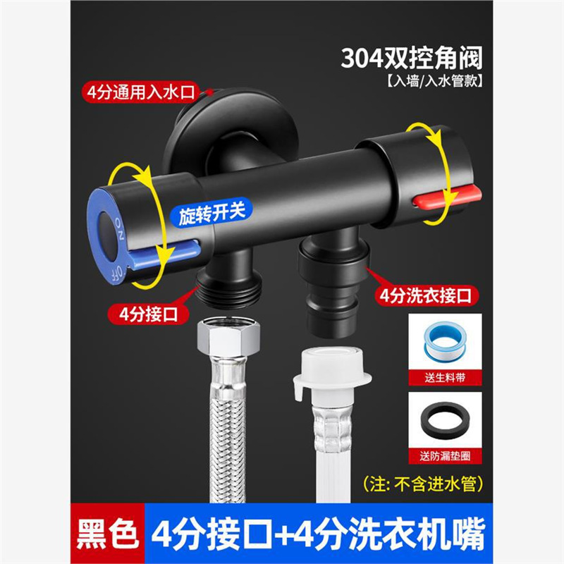 • 검정색 이중 제어 각도 밸브 304 두꺼워짐(4점 인터페이스 + 4점 세탁기 노즐)