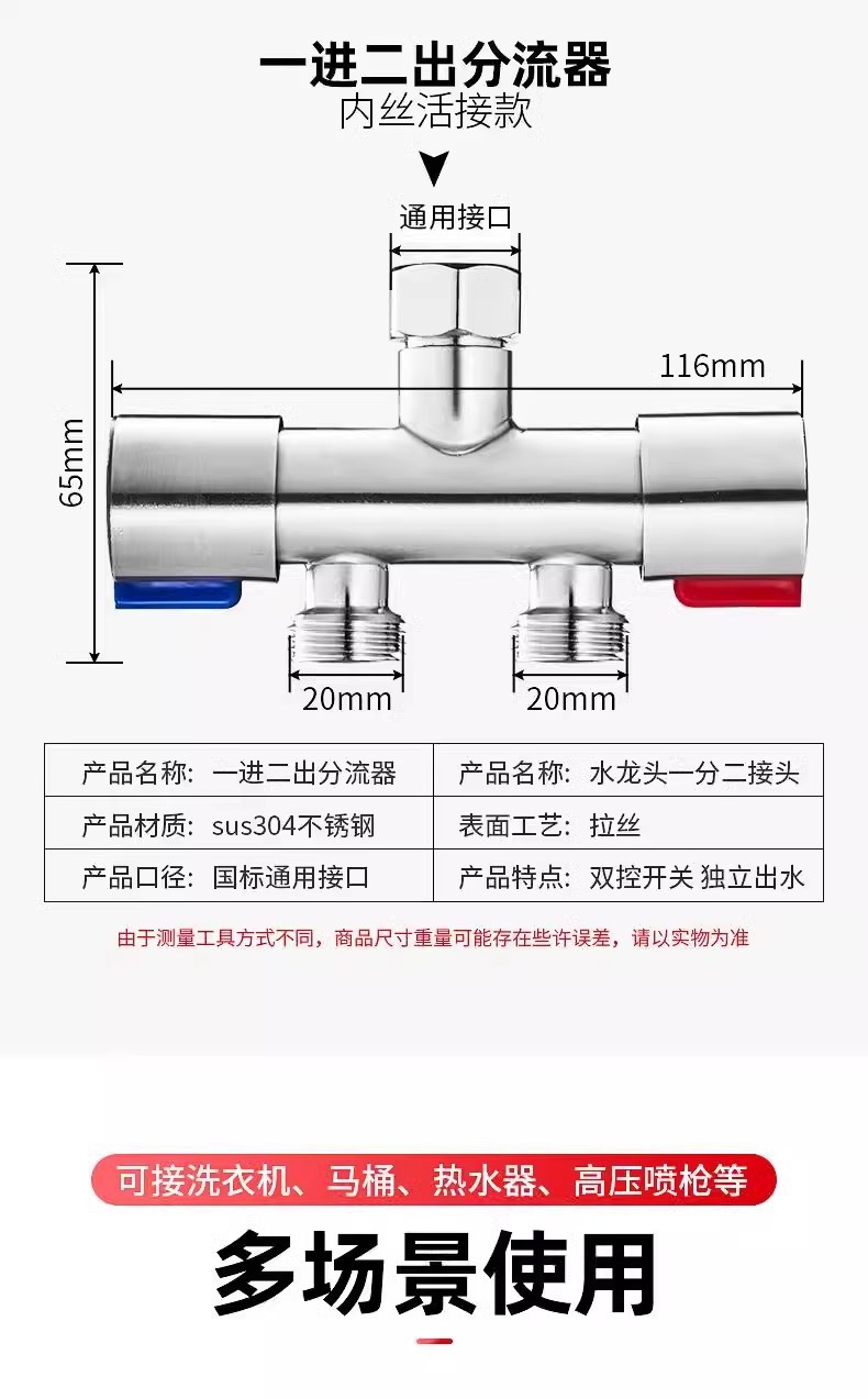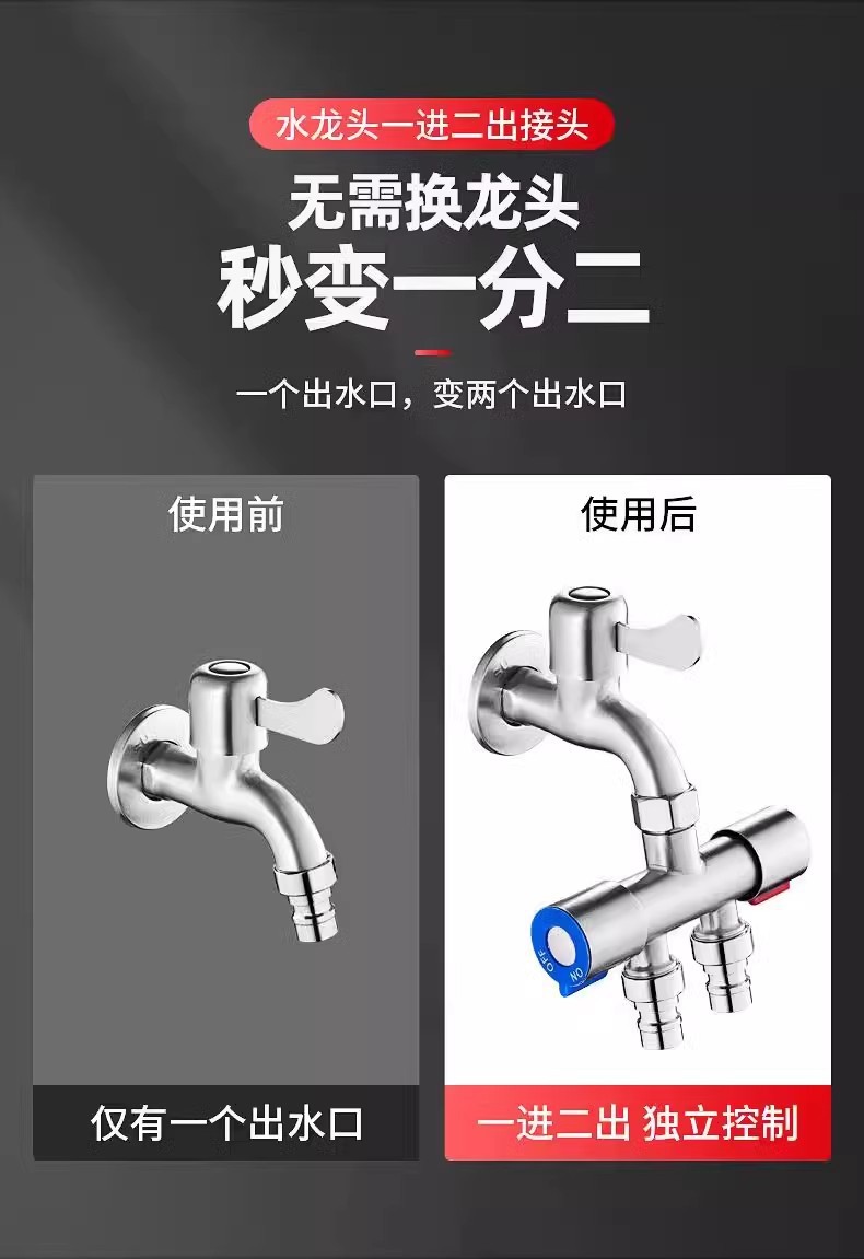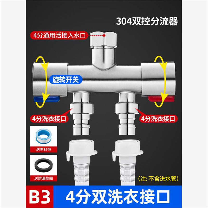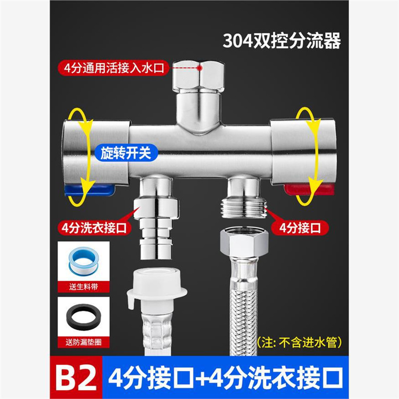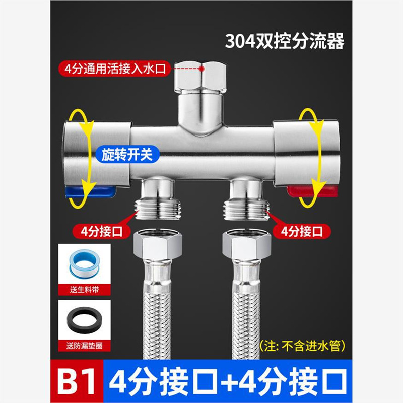 304 스테인레스 스틸 이중 제어 각도 밸브 1 인 2 아웃 3 방향 물 분배 밸브 수도꼭지 1 인 2 아웃 물 분배 장치 스위치스토어 가기