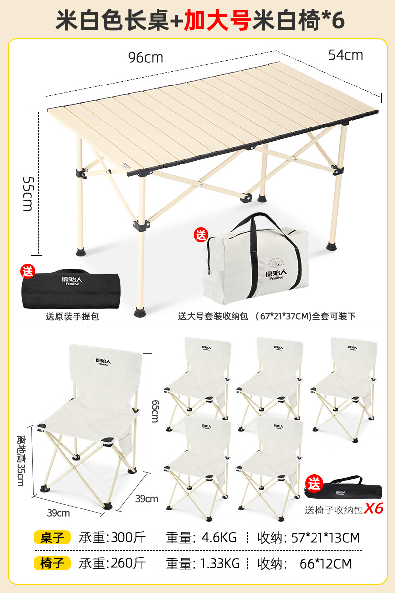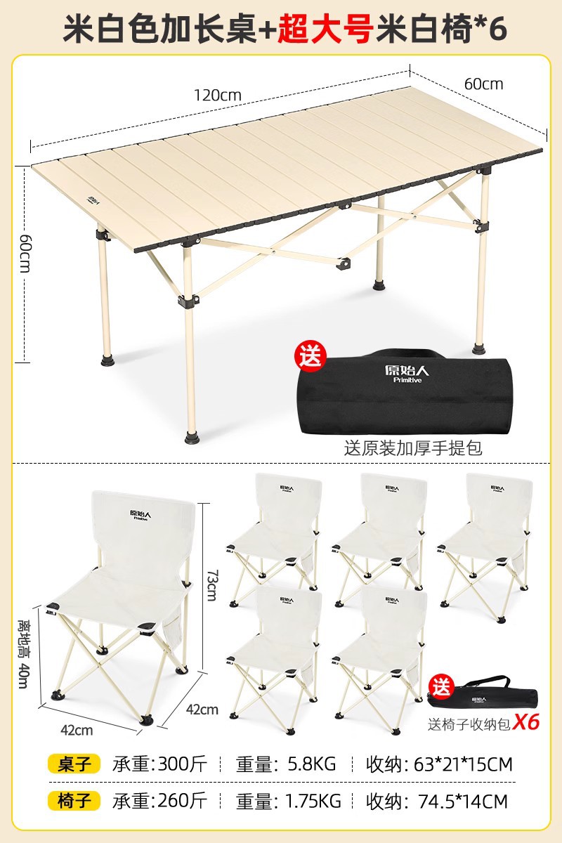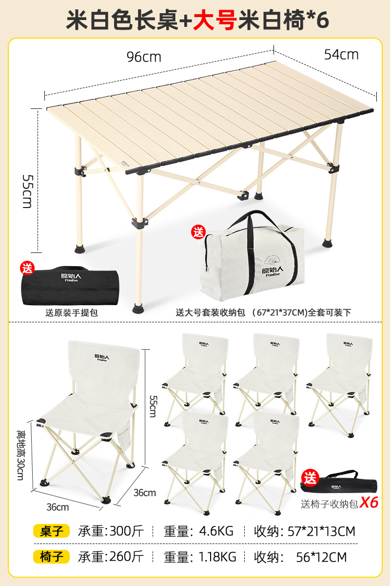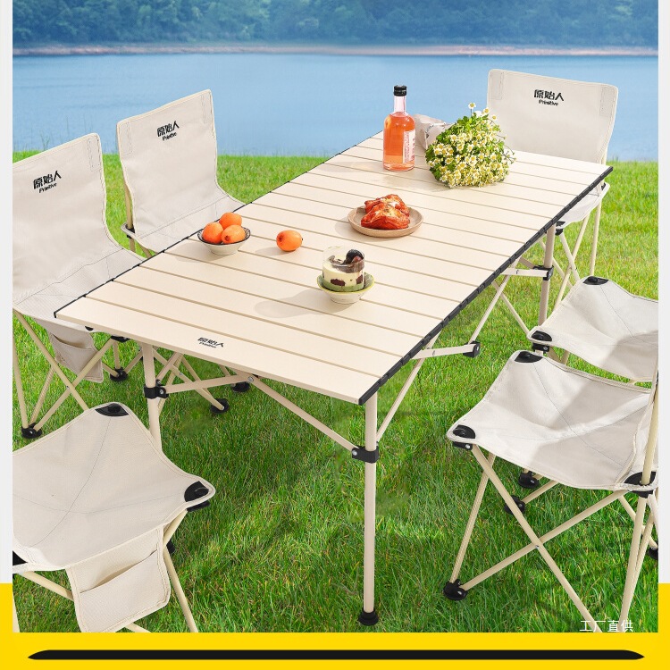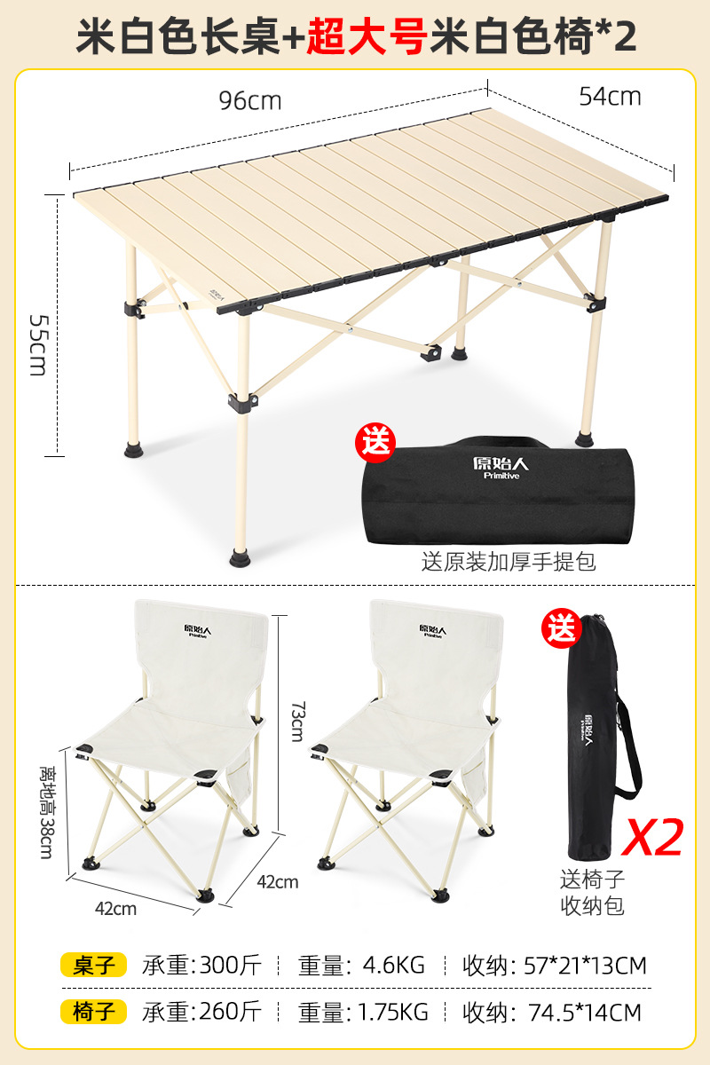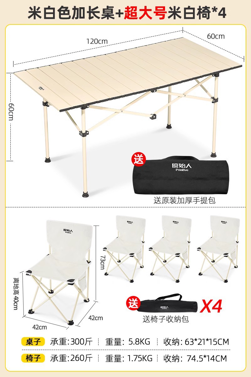 원시 캠핑 테이블과 의자 계란말이 테이블 야외 접이식 테이블 의자 테이블 일체형 휴대용 피크닉 피크닉 Xianchi스토어 가기