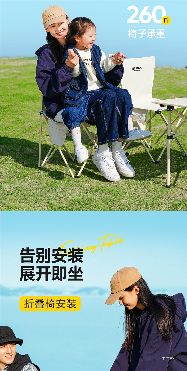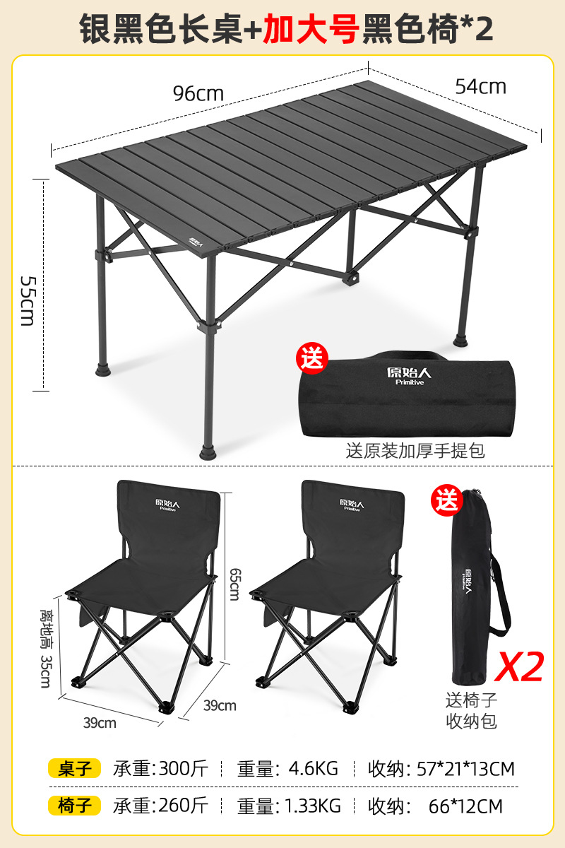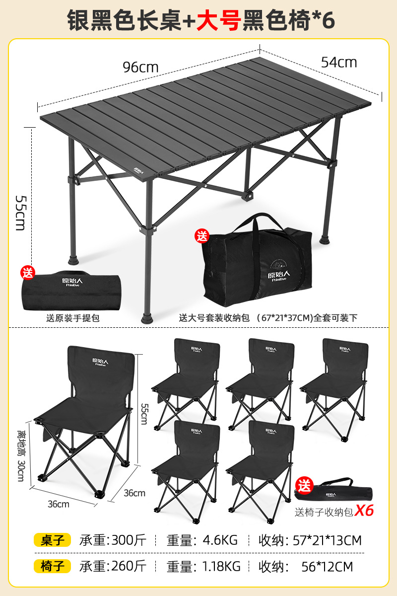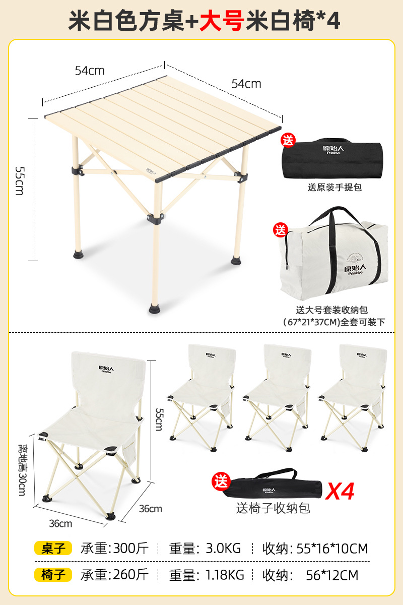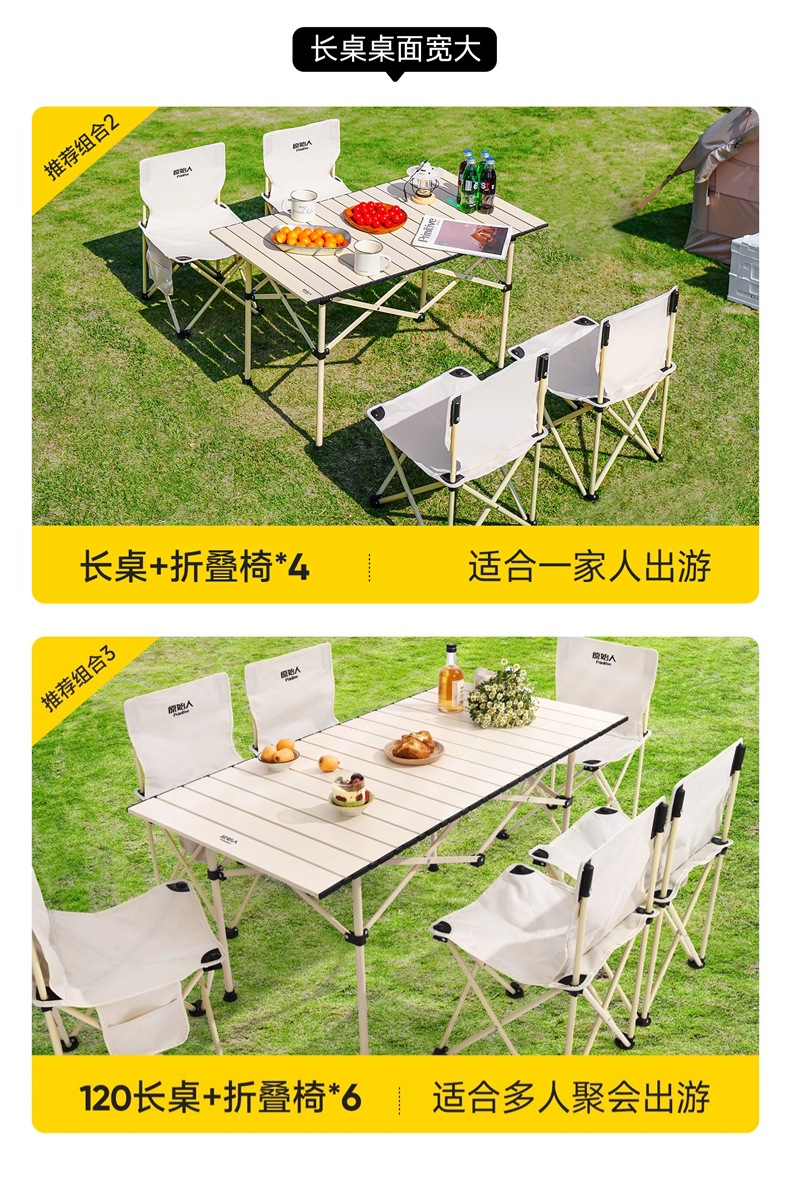원시 캠핑 테이블과 의자 계란말이 테이블 야외 접이식 테이블 의자 테이블 일체형 휴대용 피크닉 피크닉 Xianchi스토어 가기