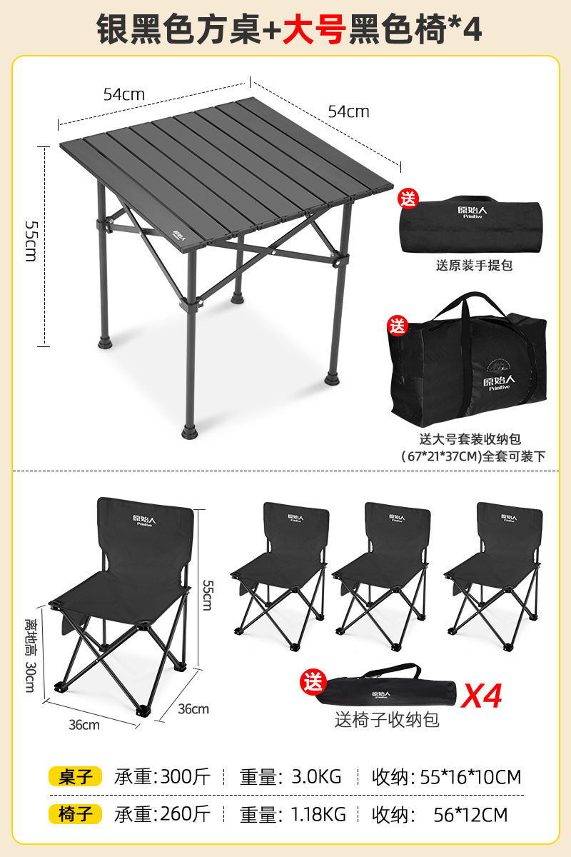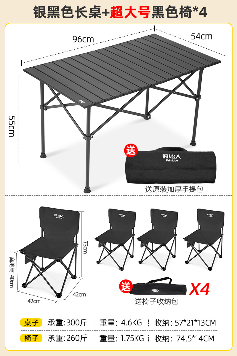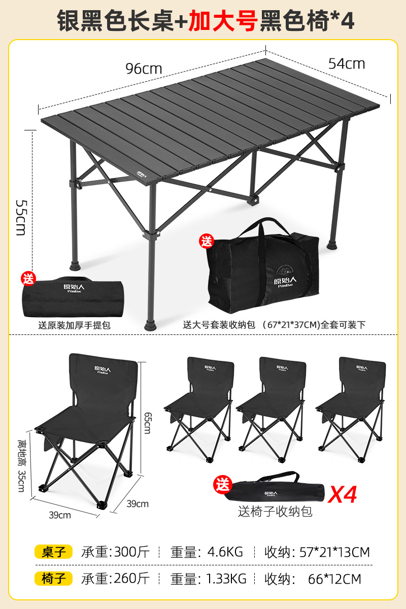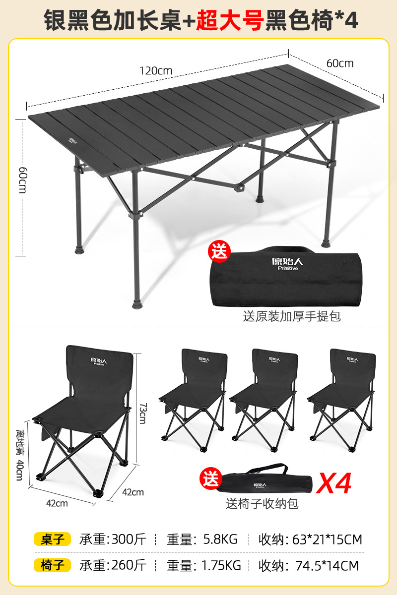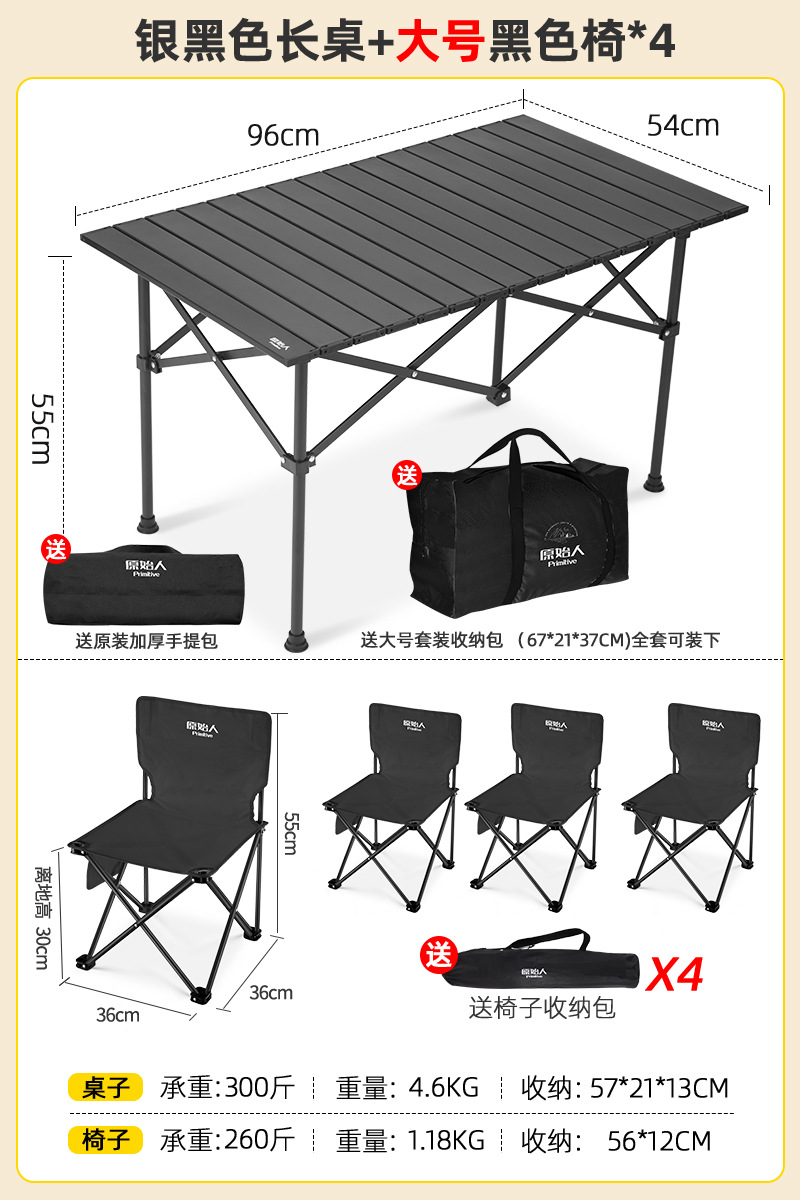 • [피크닉 바비큐 추천] 블랙 [긴 테이블 120개 + 특대형 의자 4개] 테이블과 의자 독립 수납가방 무료 제공