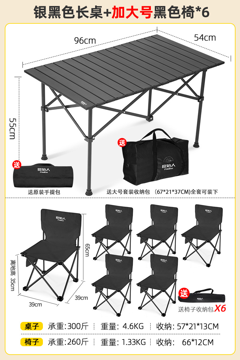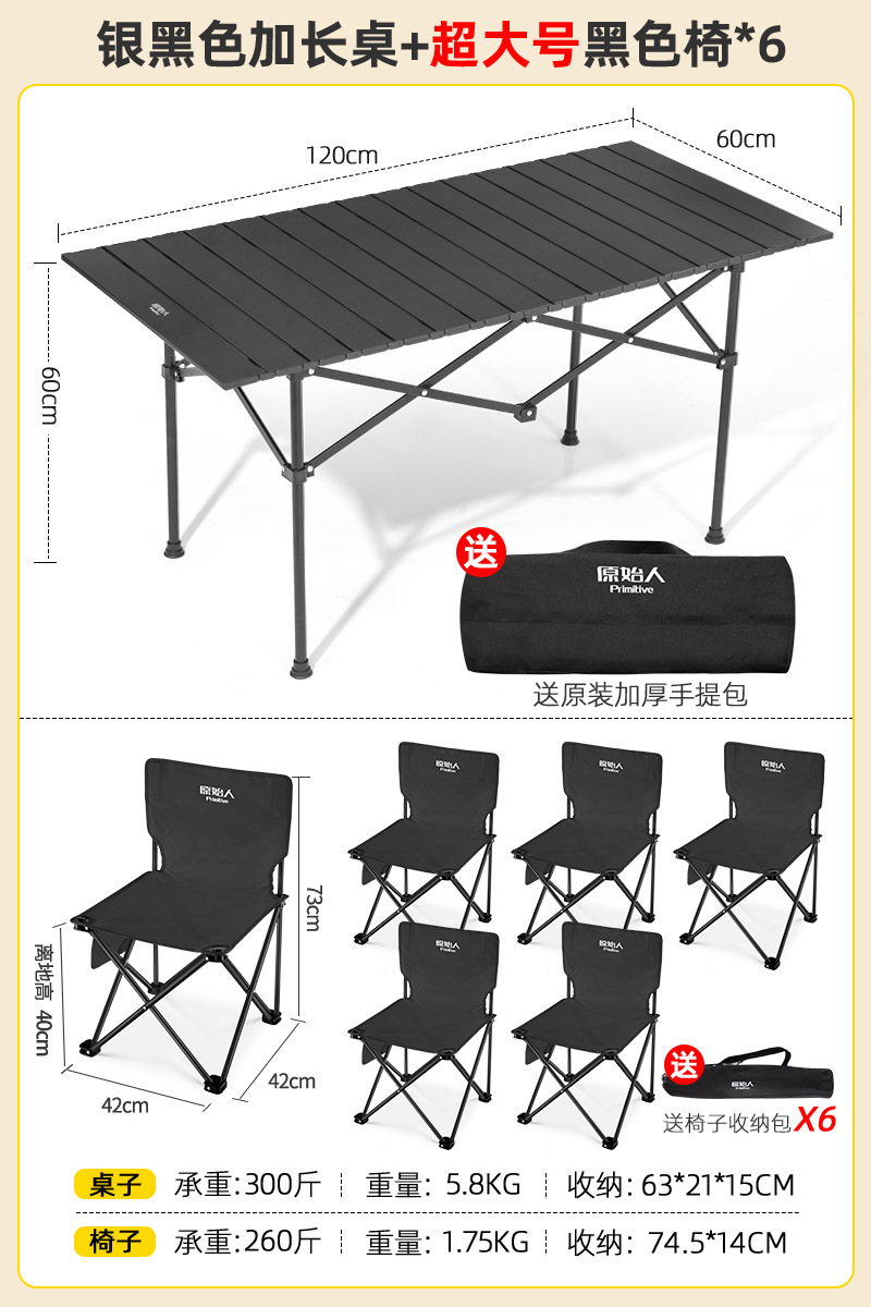 • [피크닉 파티 추천] 블랙 [긴 테이블 120개 + 특대형 의자 6개] 테이블과 의자 독립 수납가방 무료 제공