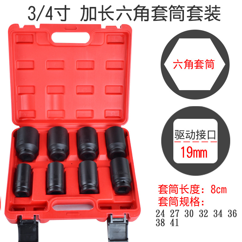 3/4 인치 중형 공기총 슬리브가 길어지고 두꺼운 무거운 공기총 헤드 3436 슬리브 헤드 38mm 육각형 슬리브 헤드스토어 가기