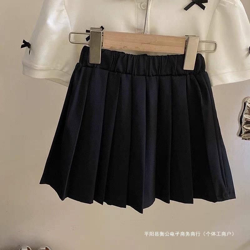아동 의류 아기 소녀 대학 스타일 정장 2025 여름 드레스 소녀 활 반팔 탑 주름 치마 투피스 도매스토어 가기