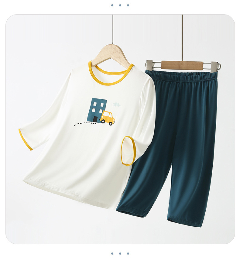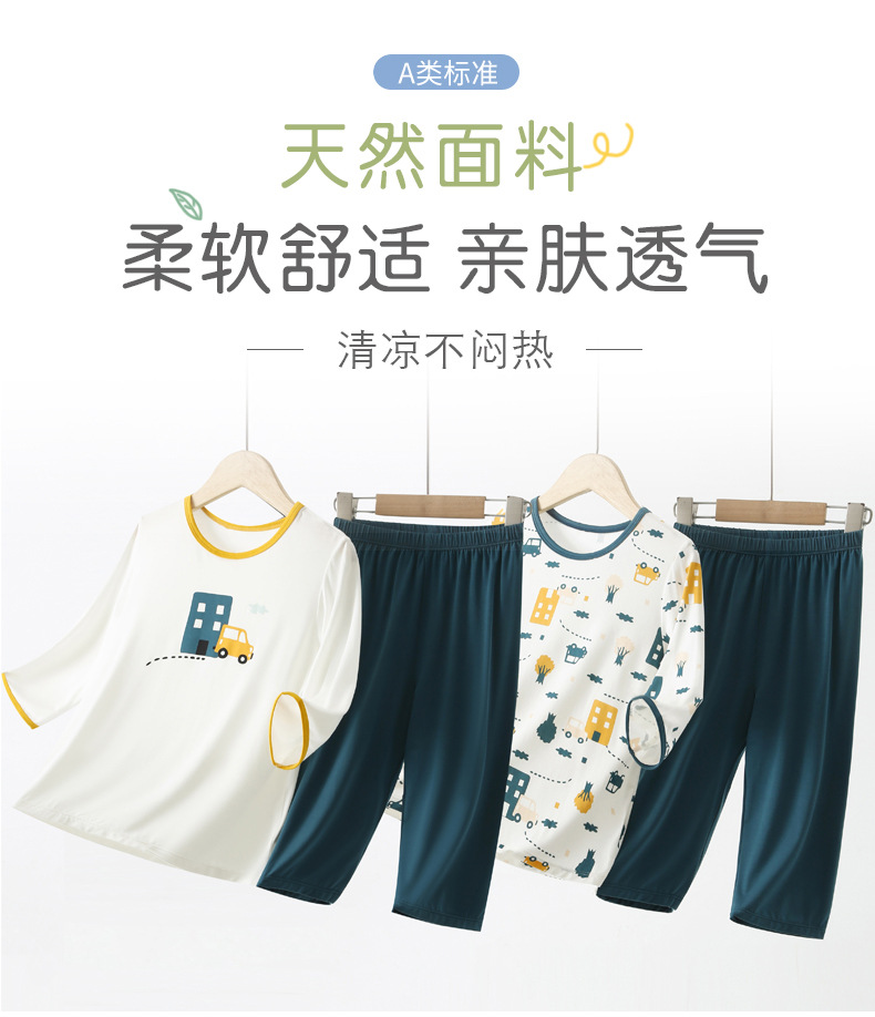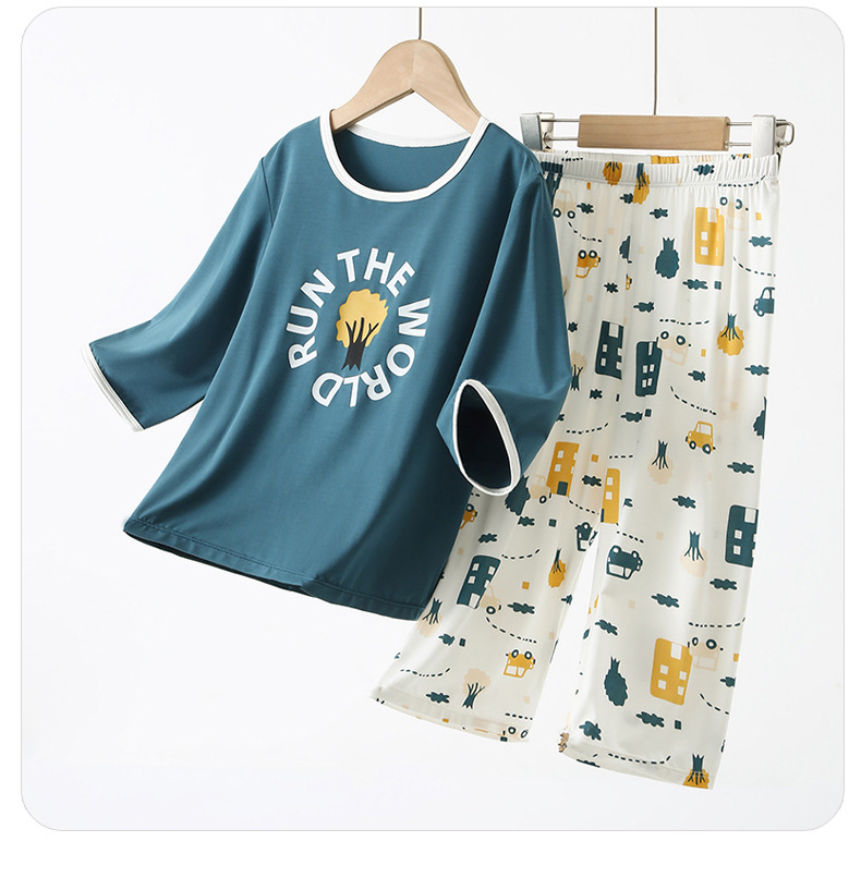 어린이 모달 파자마 소년 홈 옷 7 소매 어린이 잠옷 여름 얇은 소년 에어컨 반팔스토어 가기