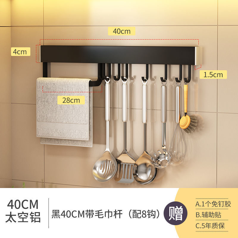 • 블랙 40cm [타월걸이 포함] (후크 8개 포함)