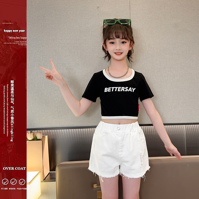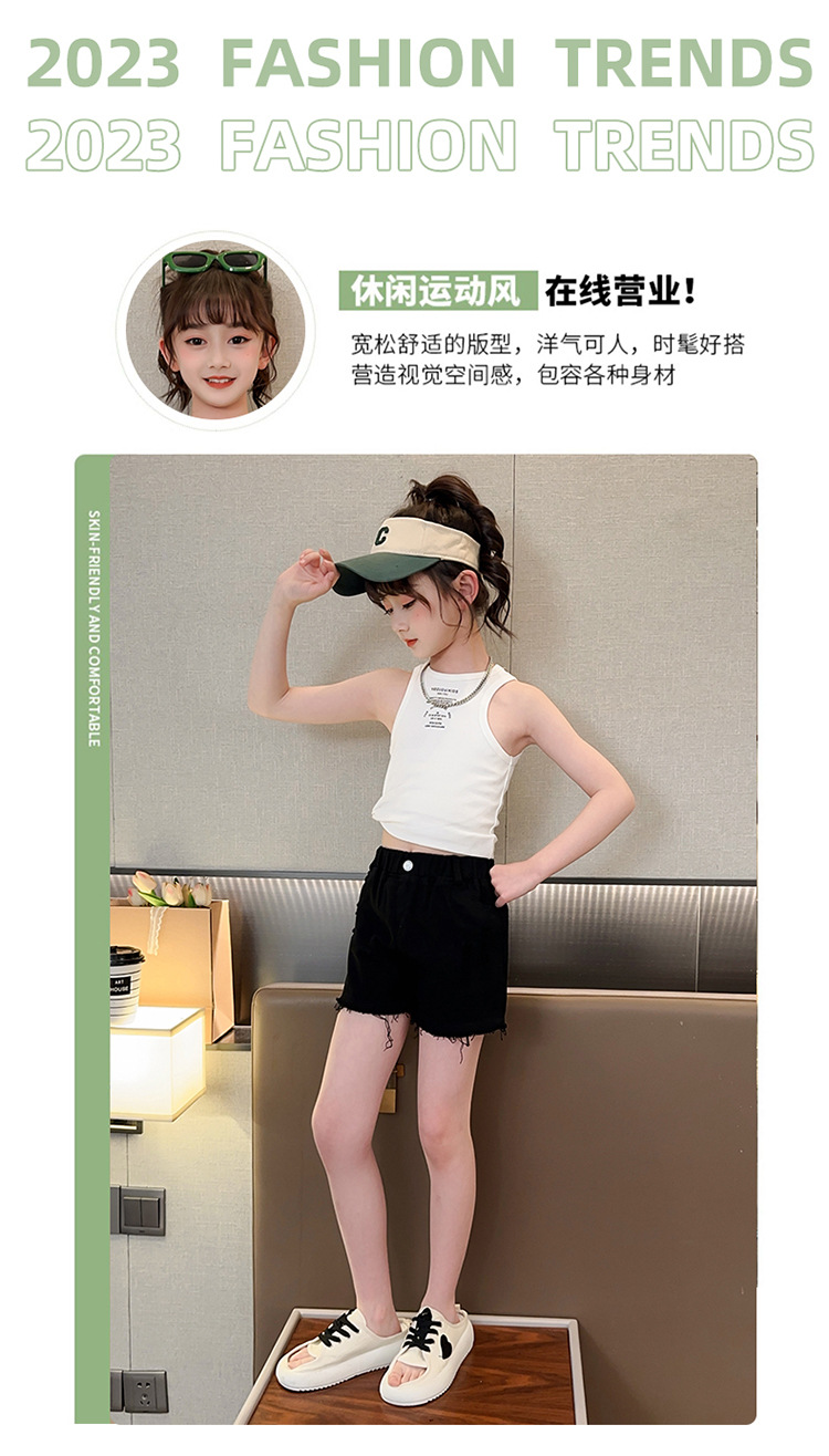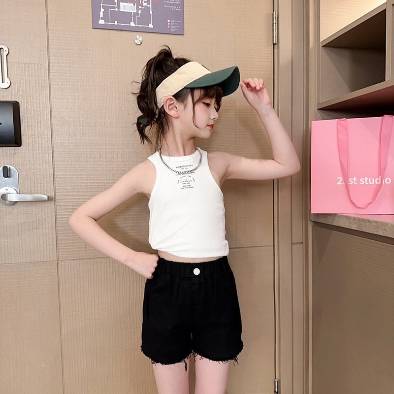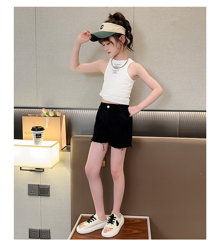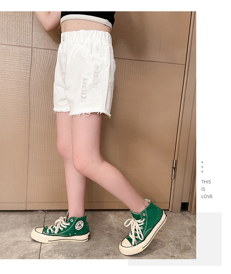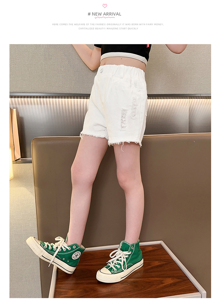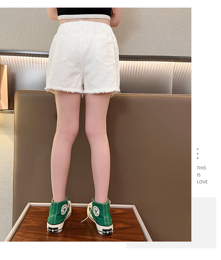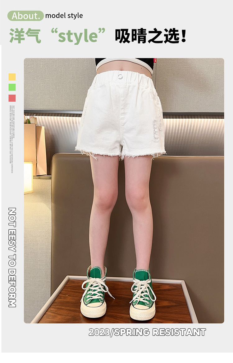 소녀 반바지 여름 얇은 2024 새로운 느슨한 큰 어린이 청바지 어린이 흰색 바지 여름 착용 조수스토어 가기