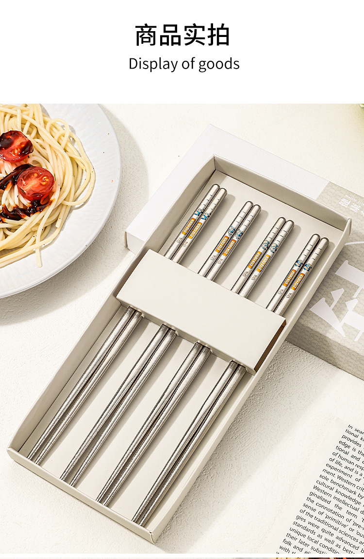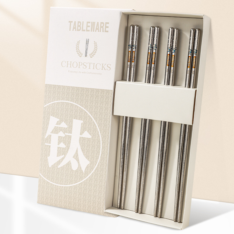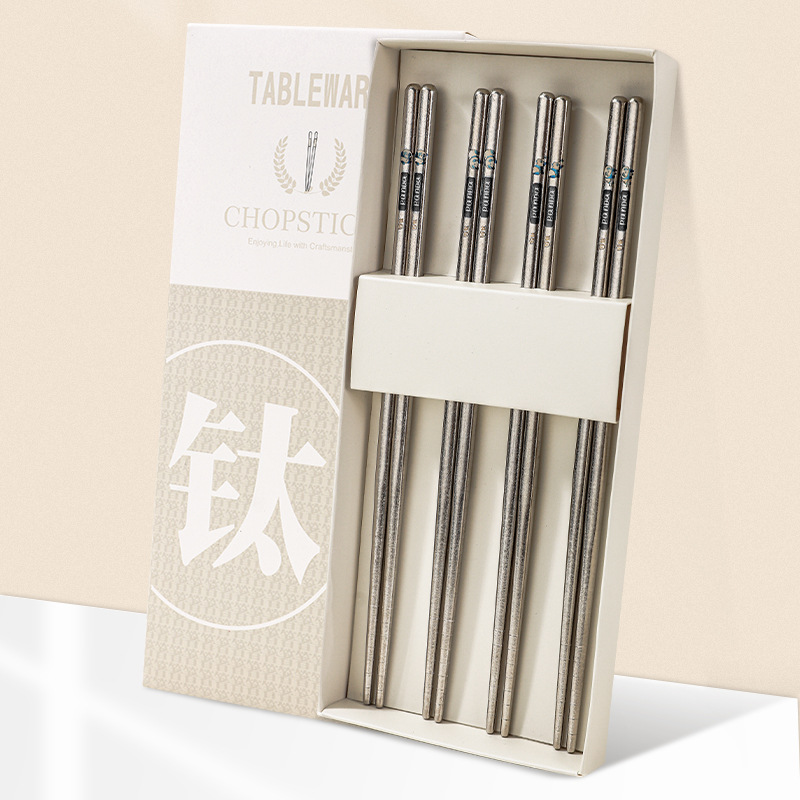 TI 순수 티타늄 젓가락 가정용 야외 미끄럼 방지 선물 상자 세트 결정 야외 이슬 캠핑 티타늄 합금 식기 빠른스토어 가기