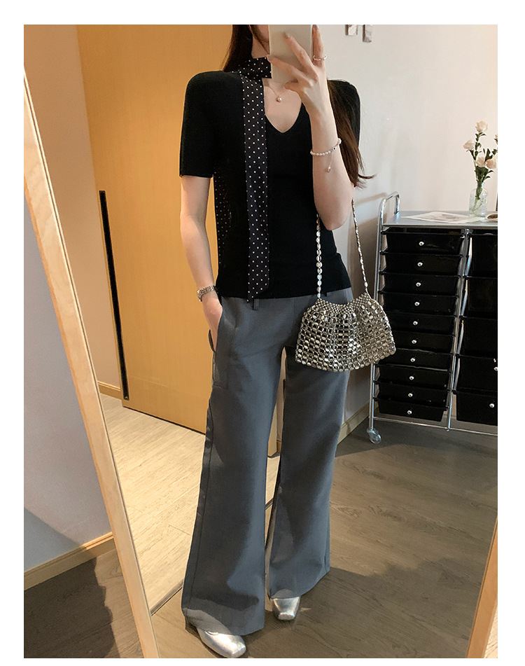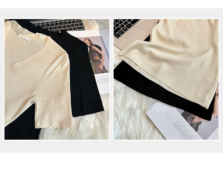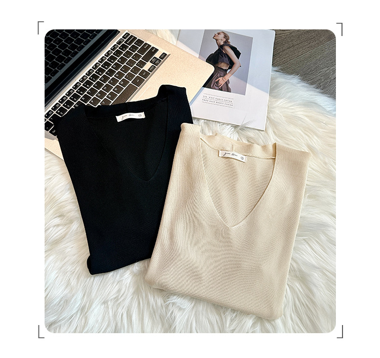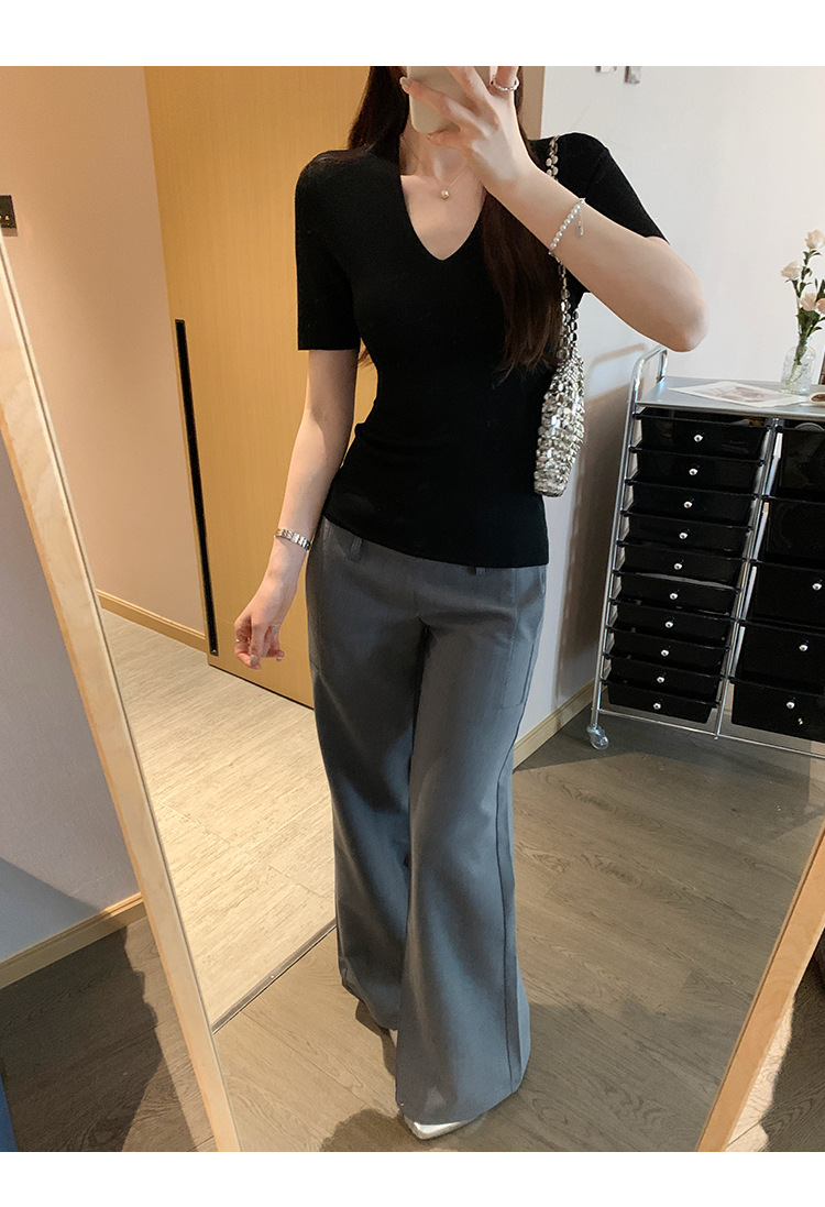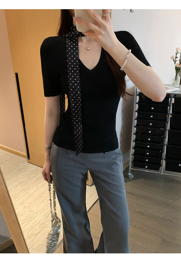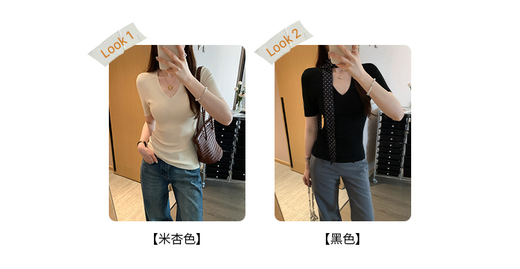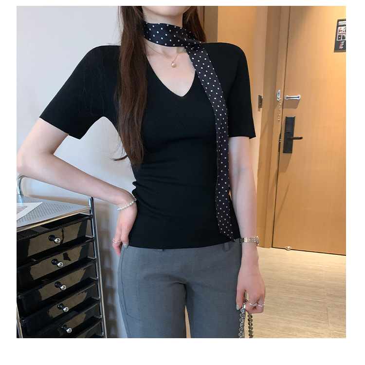 세련된 V넥 슬림 핏 반팔 스웨터 여성 2025 년 여름 새로운 하이 엔드 노 범프 슈퍼 잘 생긴 탑스토어 가기