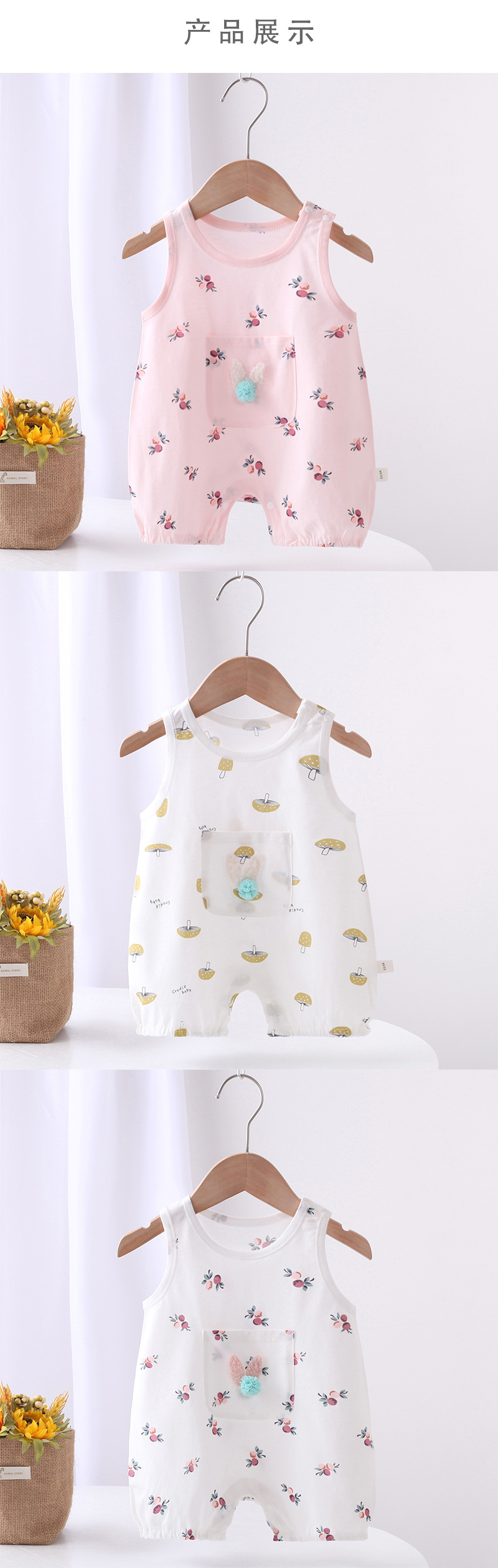여름 새 아기의 민소매 민소매 민소매 민소매 민소매 신상품 세트