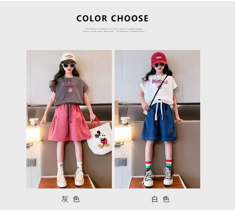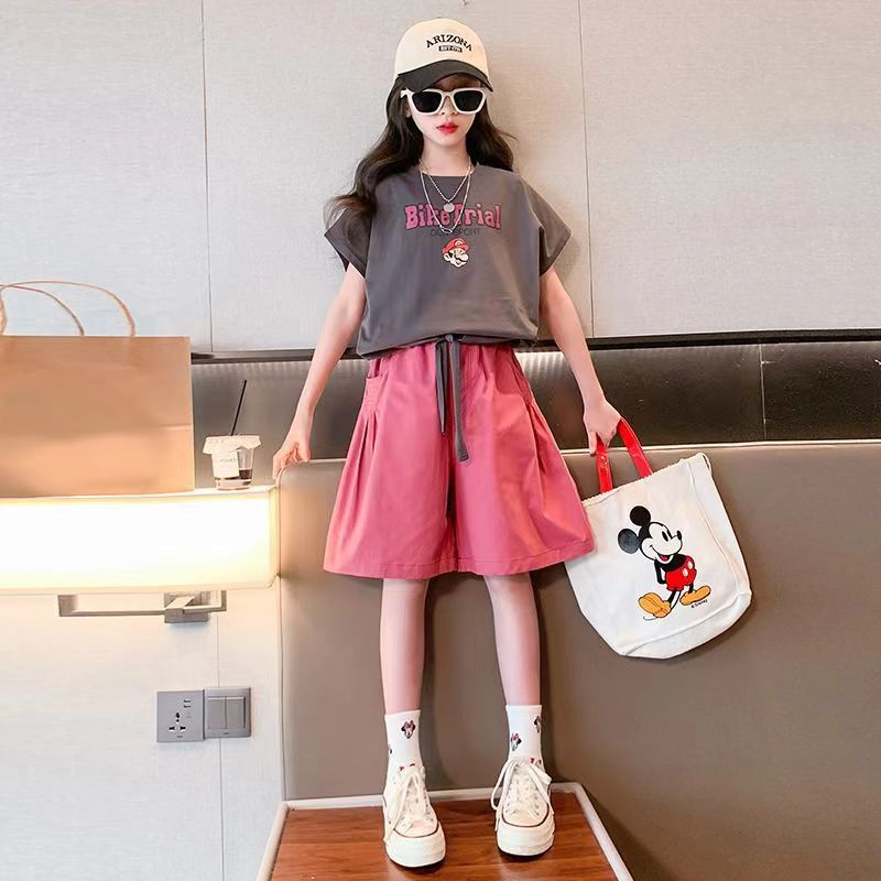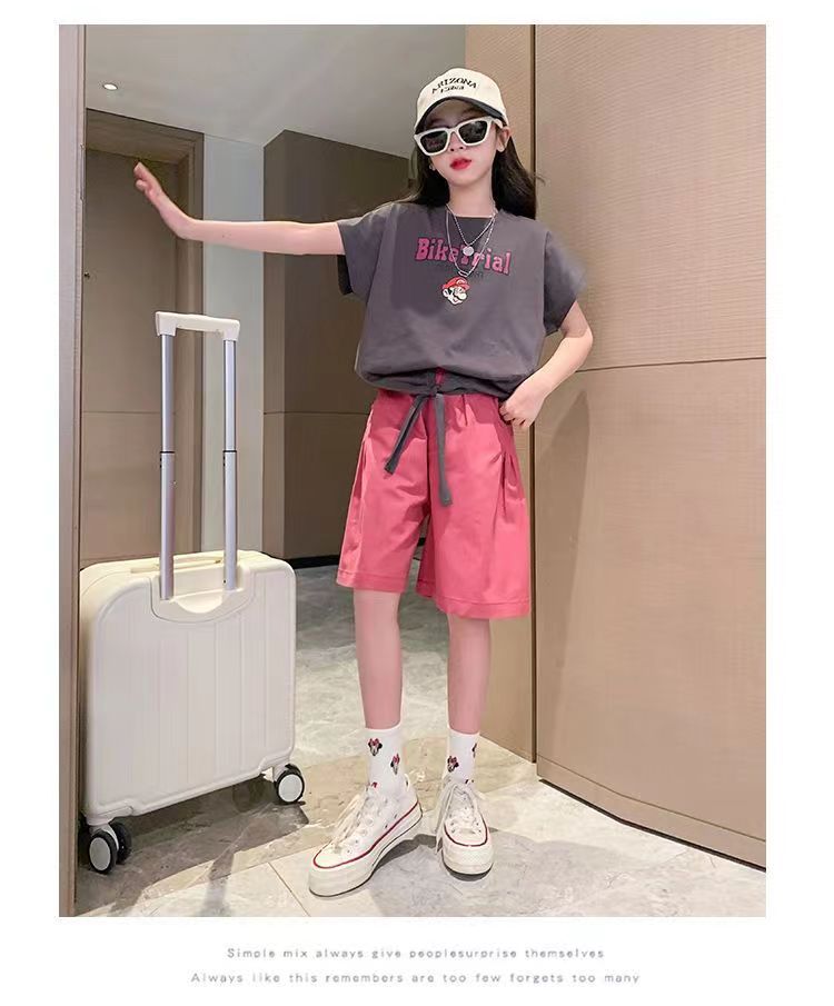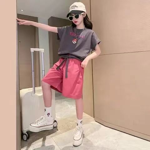여아 정장 여름 새 여름 한국 스타일 서양식 중대형 아동 반바지 캐주얼 스포츠 투피스 세트