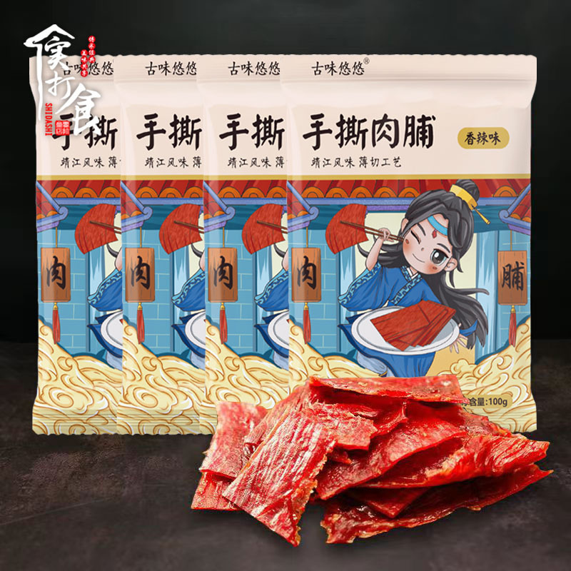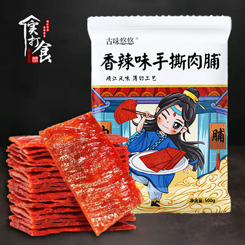 손으로 찢은 육포 500g 벌크 징장 고기 가게 육포 사무실 레저 고기 간식 스크랩 400g스토어 가기
