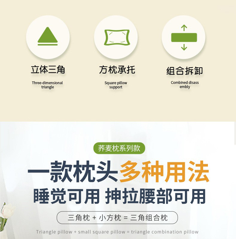 메밀 삼각 베개 성인용 경추 보호 수면용 전체 메밀 껍질 학생 기숙사 수면용 일체형 삼각 베개