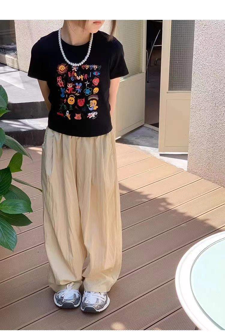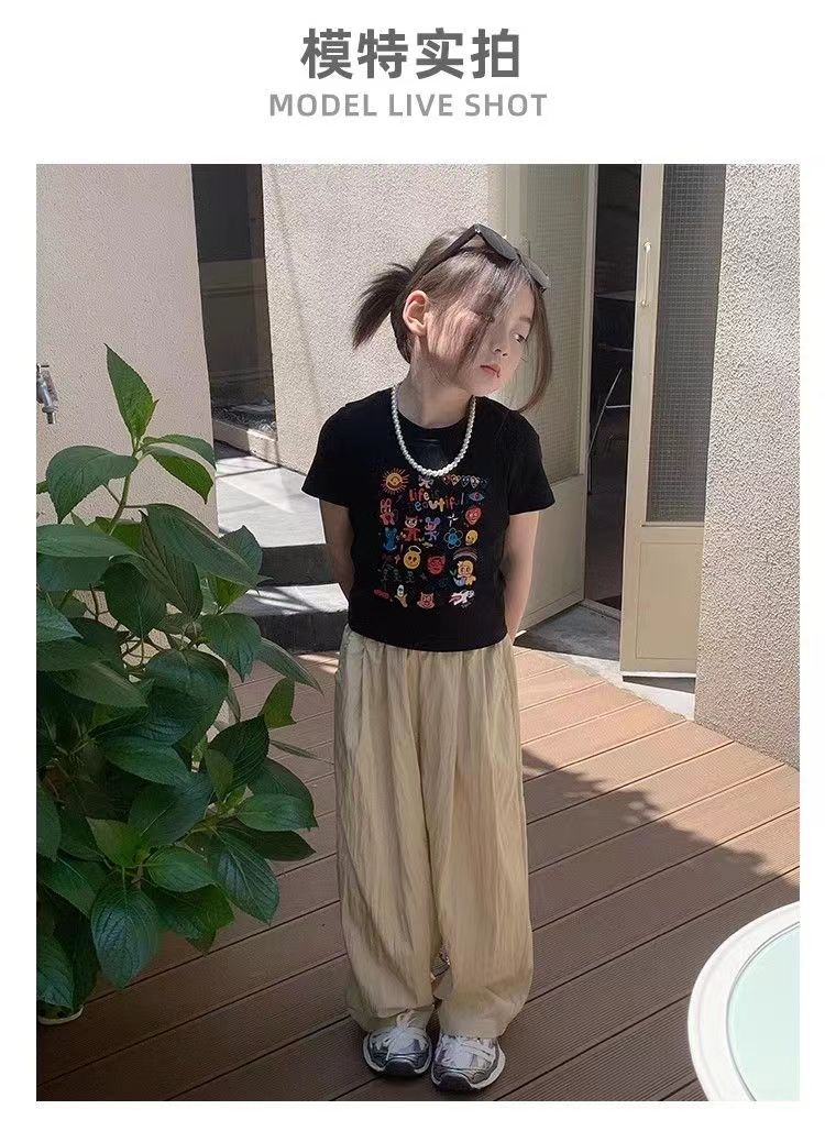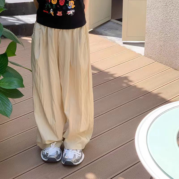 소녀 여름 얇은 아이스 실크 캐주얼 바지 어린이 느슨한 모기 방지 바지 게으른 스타일 멋진 바지 해변 휴가 바지