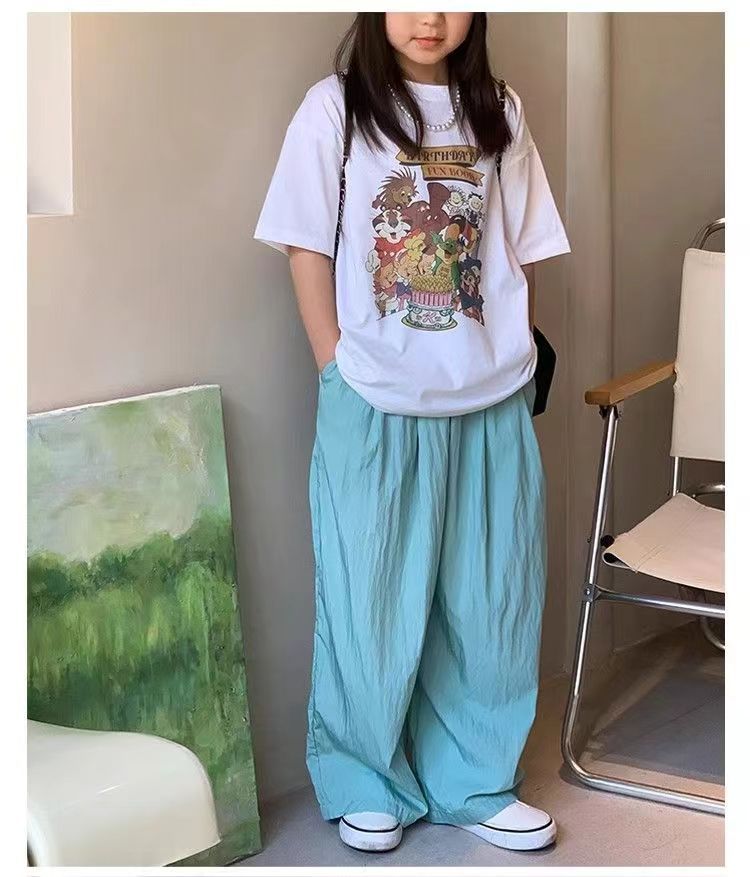 소녀 여름 얇은 아이스 실크 캐주얼 바지 어린이 느슨한 모기 방지 바지 게으른 스타일 멋진 바지 해변 휴가 바지스토어 가기