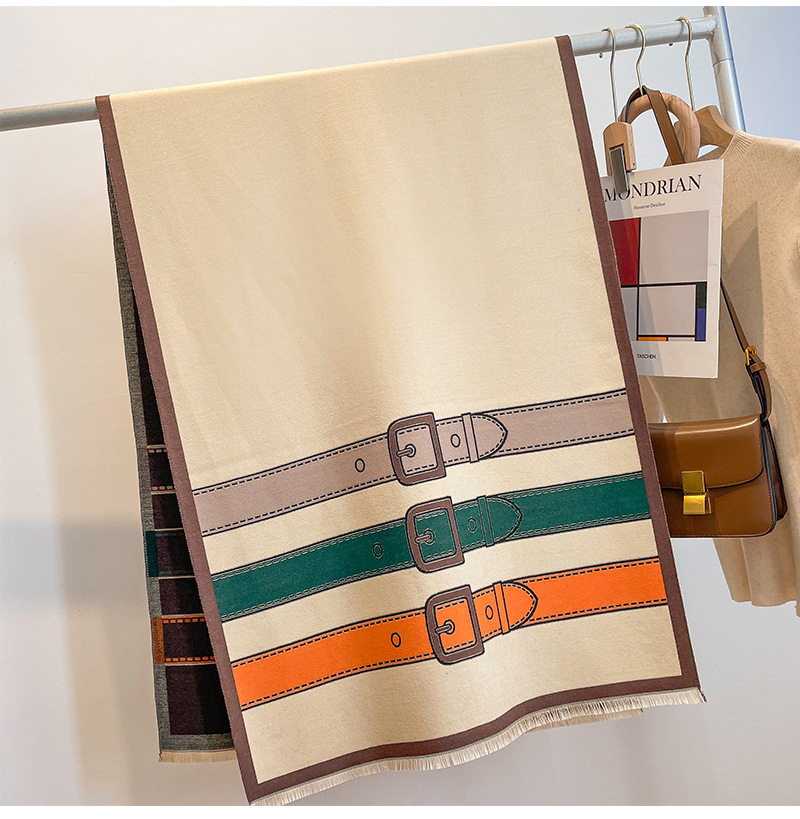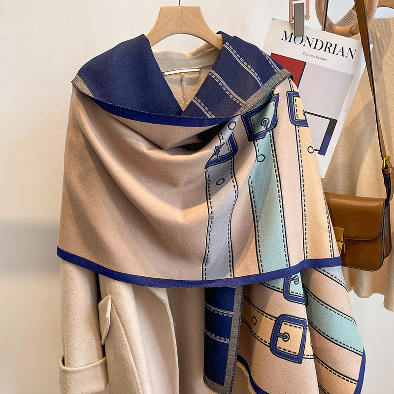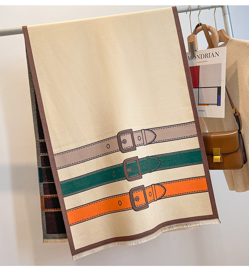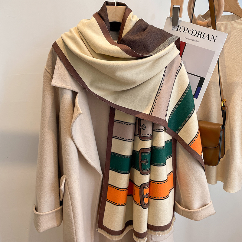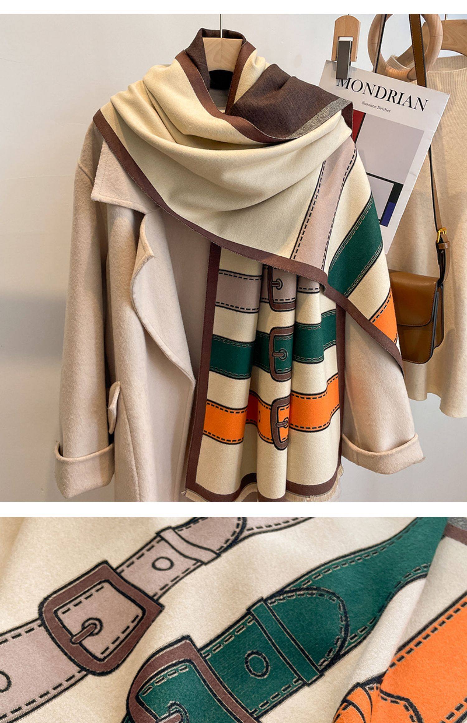 2024 가을과 겨울 새로운 캐시미어 스카프 여성 패션 컬러 매칭 벨트 올 매치 긴 두꺼운 따뜻한 숄 스카프