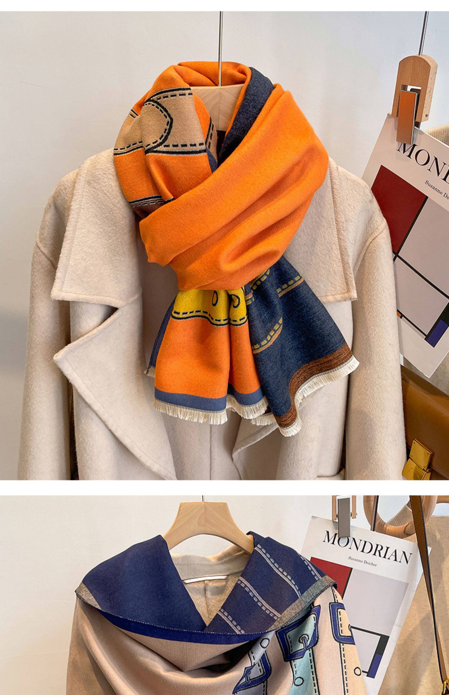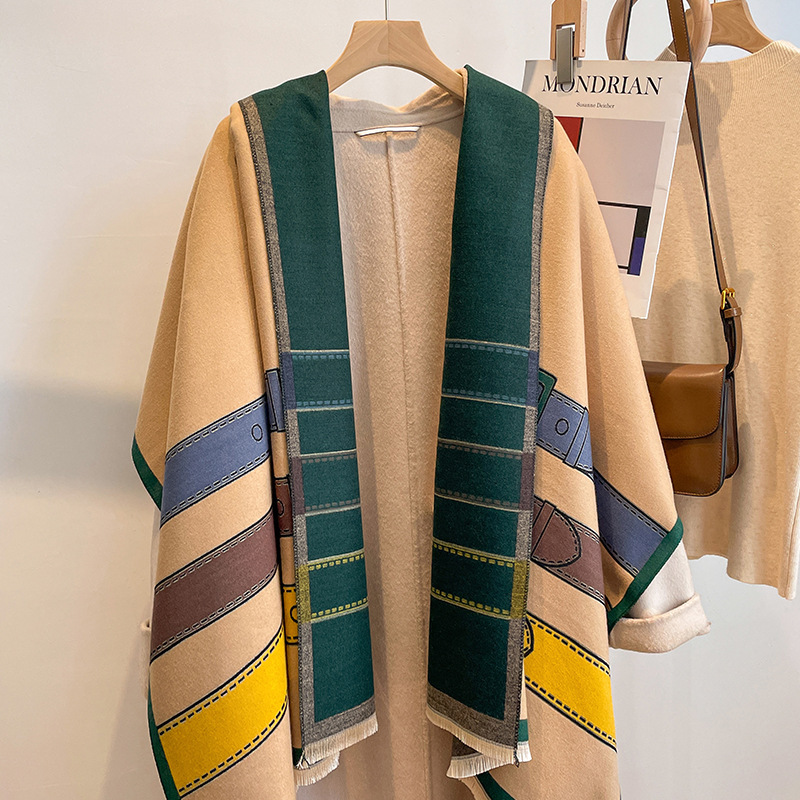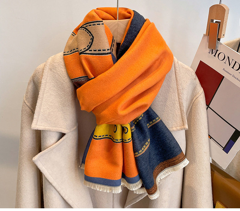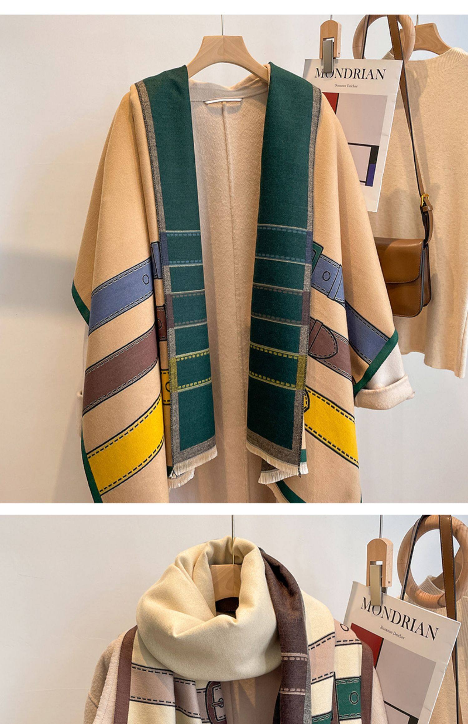 2024 가을과 겨울 새로운 캐시미어 스카프 여성 패션 컬러 매칭 벨트 올 매치 긴 두꺼운 따뜻한 숄 스카프