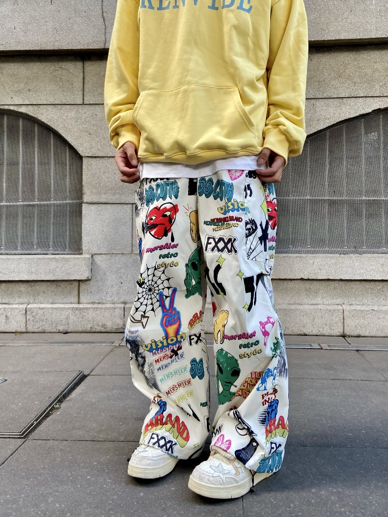 2025 아메리칸 스타일 올 매치 레트로 손으로 그린 컬러 그래피티 스트레이트 캐주얼 바지 남녀 올 매치 와이드 레그 작업복 바지스토어 가기