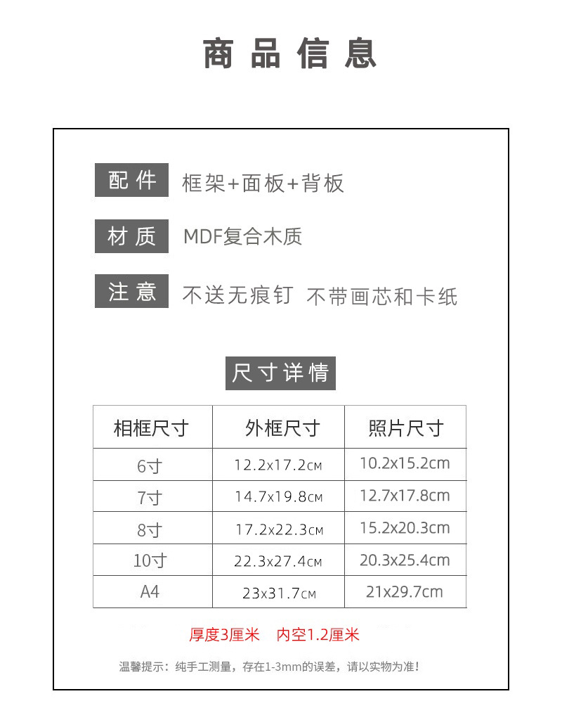 사진, 서예 및 그림 프레임, 중공 테이블, 6인치, 7인치, 8inch 10inch A4 장식 프레임을 위한 간단한 나무 사진 프레임 장식품