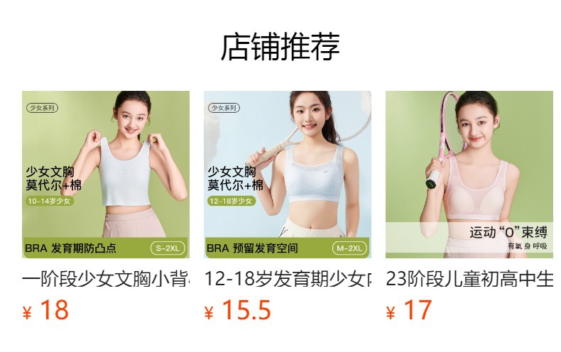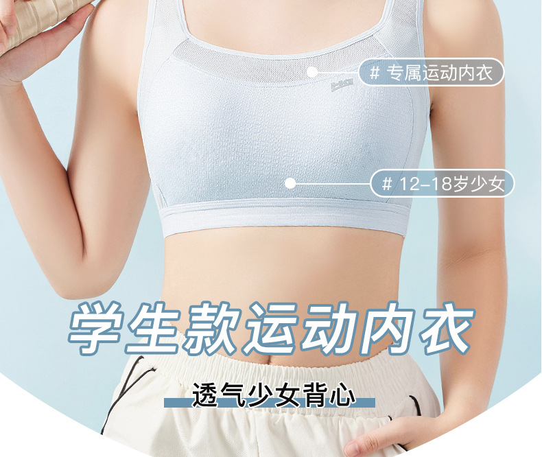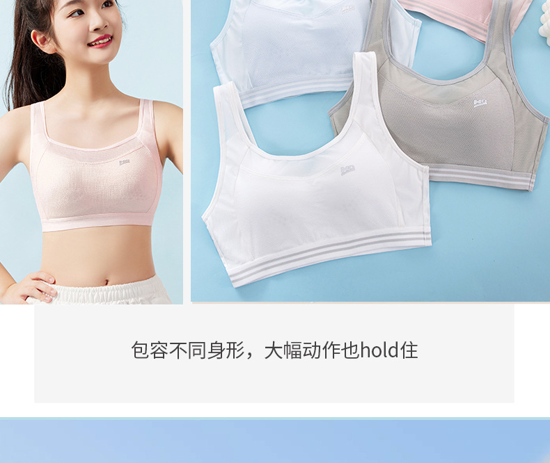 개발 중 12-18 세 소녀를위한 속옷, 중학교, 노인 및 초등학생, 브래지어, 충격 방지 메쉬, 통기성 스포츠 조끼스토어 가기