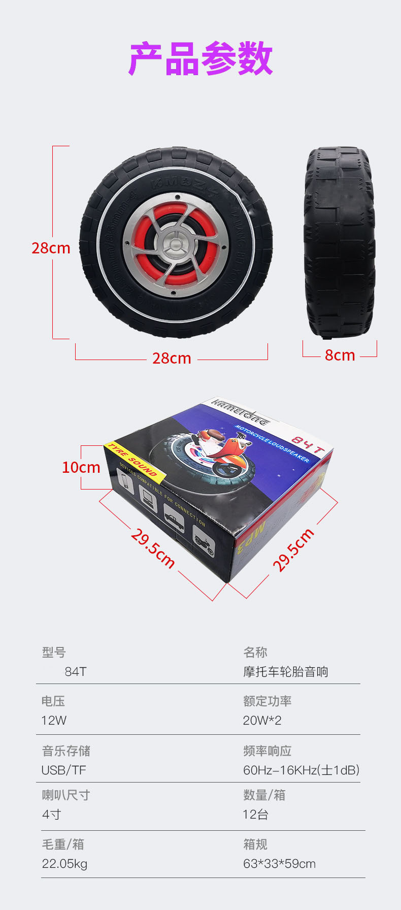 Meishenglins 오토바이 오디오 방수 모조 타이어 블루투스 MP3 플레이어 전기 자동차 스피커 12V 서브 우퍼